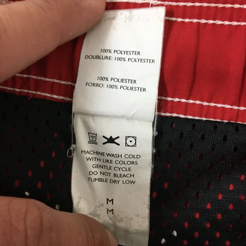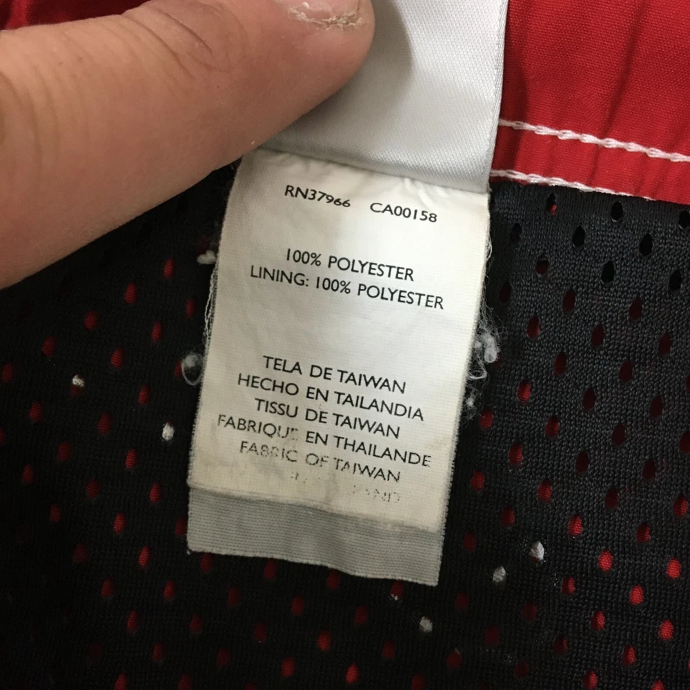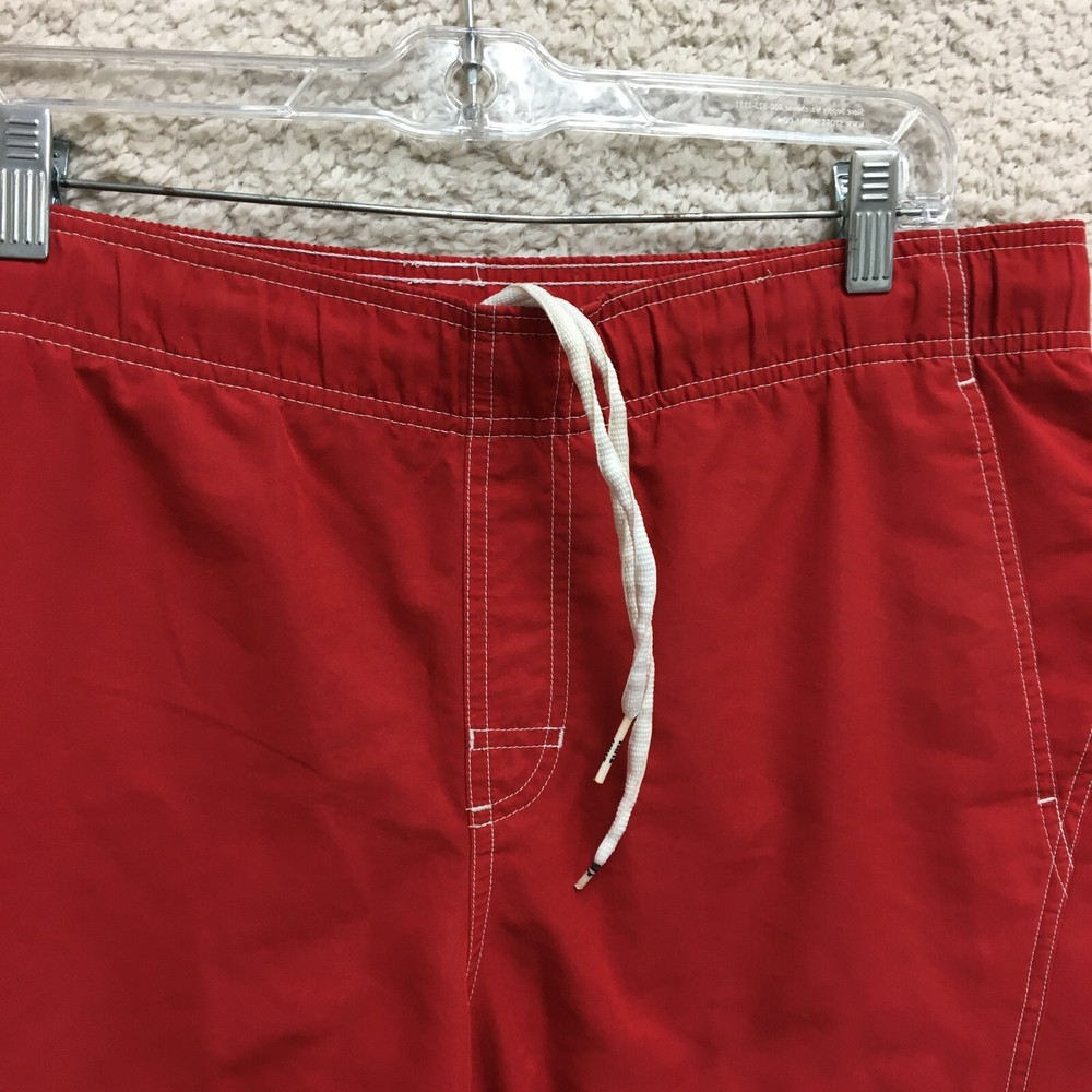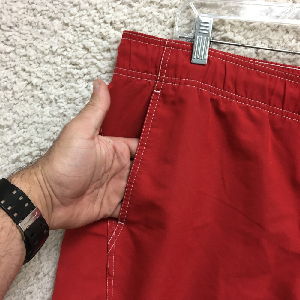 Department: Men Theme: Logo, Modern, Sports Fabric Type: Blended Fabric Pattern: Solid Vintage: Yes Features: Breathable, Drawstring, Elastic Waist, Lightweight, Pockets Country of Origin: Taiwan Swim Bottom Style: Trunks Color: Red Brand: Nike Size Type: Regular Size: XL Garment Care: Machine Washable Material: 100% Polyester, Polyester Seller Notes: “Good Used Condition. Please, See Pictures for Full Condition and Measurements.” Type: Bottom