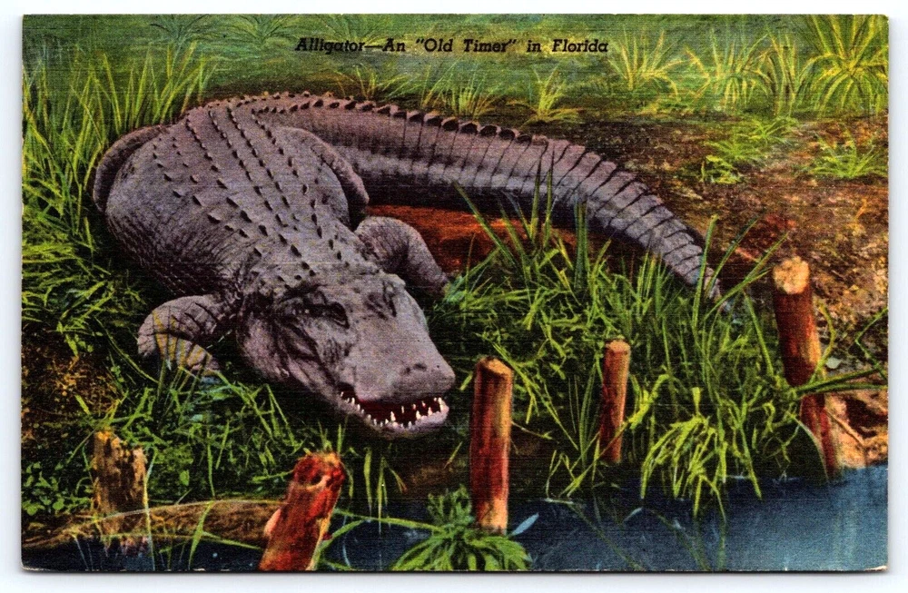 VINTAGE OLD ANTIQUE POSTCARD ALLIGATOR ANIMAL TROPICAL FLORIDA OLD TIMER USA