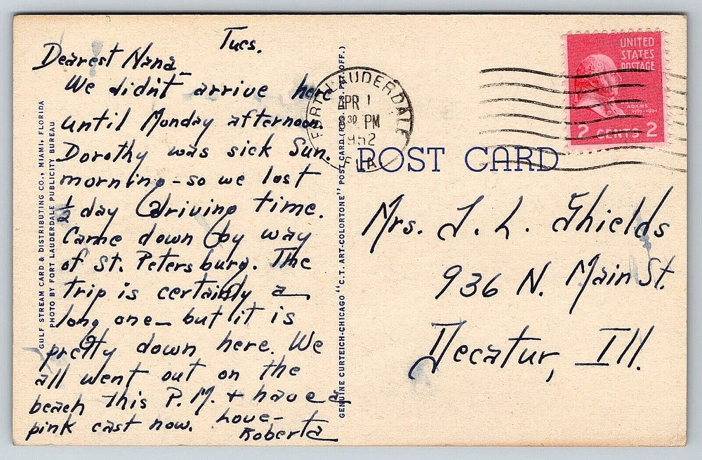 Artist: Postcard Features: Divided Back, Stamp, Stamped, Original Genuine Antique Vintage Postcard City: Fort Lauderdale Vintage: Yes Subject: Cities & Towns Signed: Yes Finish: Matte Size: Standard (5.5 x 3.5 in) Featured Person: None Color: Multicolor Continent: North America Character: Postcard Region: Florida Posted: Yes UPC: DOES NOT APPLY Era: Divided Back (1907-1915) Type: VINTAGE OLD ANTIQUE POSTCARD BOATS FORT LAUDERDALE FLORIDA USA Location: Fort Lauderdale, Florida USA Seller Notes: “Good Vintage Condition. See Pictures And Description Closely For Details.” Franchise: Postcard gtin13: DOES NOT APPLY Postage Condition: Posted Country: United States Stamp: Yes Orientation: Horizontal Theme: Aerial View, Architecture, Cities & Towns, Community Life, Domestic & Family Life, Famous Places, Historical Figures, Landscapes, Nautical, Roadside America, Seasons, Social History, Tourism, Transportation, Travel, Postcard, Antique, Vintage, Ephemera, Collectible, Memorabilia, Old, Retro, History, Card, Mail, Paper Occasion: Postcard Year Manufactured: 1952 Brand/Publisher: Curt Teich Country/Region of Manufacture: United States Signed By: Sender Time Period Manufactured: 1950-1959 Original/Licensed Reprint: Original Antique: Yes Number of Items in Set: 1 Unit of Sale: Single Unit Material: Paper