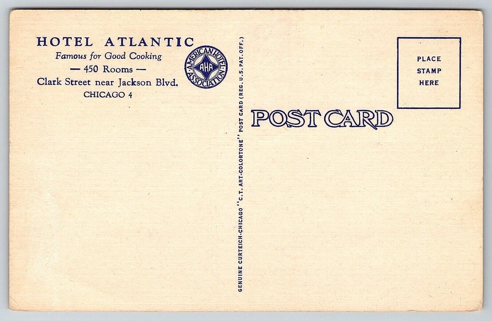 VINTAGE OLD ANTIQUE POSTCARD HOTEL ATLANTIC BUILDING CARS CHICAGO ILLINOIS USA