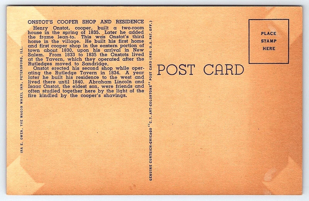 VINTAGE OLD ANTIQUE POSTCARD NEW SALEM STATE PARK LINCOLN'S NEW SALEM HOUSE
