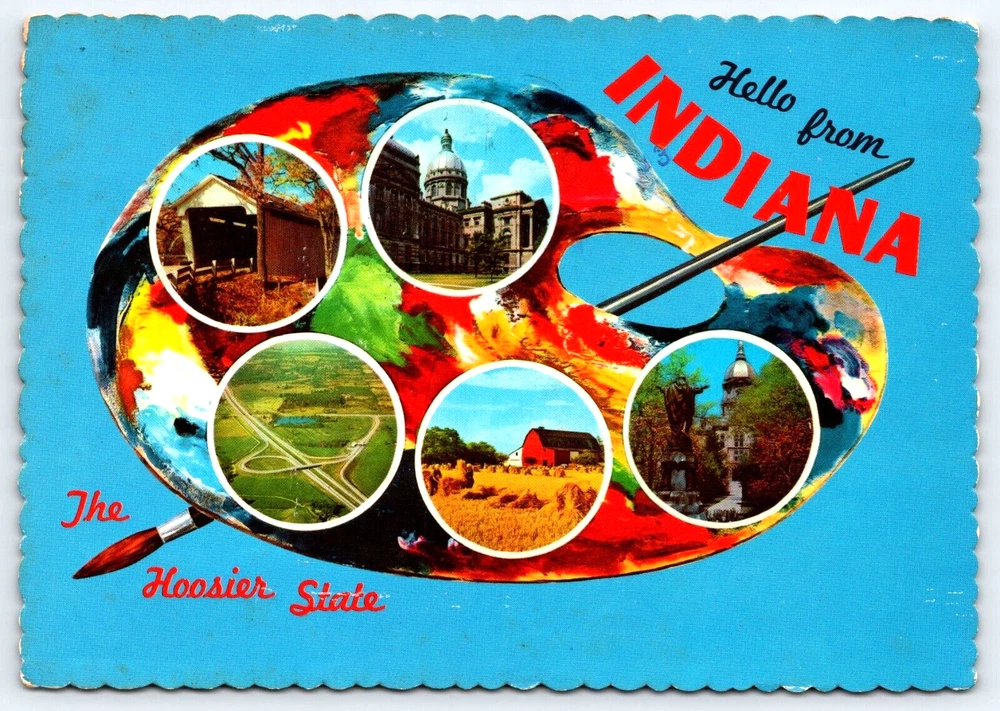 VINTAGE OLD ANTIQUE POSTCARD PHOTO INDIANA HOOSIER STATE LANDMARKS PAINT PALETTE