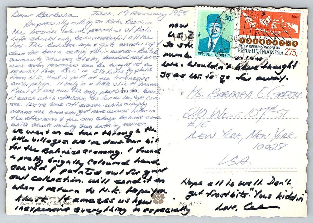 Seller Notes: “Good Vintage Condition. See Pictures And Description Closely For Details.” Artist: Postcard Material: Paper Country/Region of Manufacture: Indonesia City: Bali Beach Featured Person: None Era: Divided Back (1907-1915) Subject: Resort Features: Divided Back, Stamp, Stamped, Original Genuine Antique Vintage Postcard Vintage: Yes Postage Condition: Posted Orientation: Horizontal Location: Indonesia Continent: Asia gtin13: DOES NOT APPLY Original/Licensed Reprint: Original Time Period Manufactured: 1980-1989 UPC: DOES NOT APPLY Color: Multicolor Country: Indonesia Franchise: Postcard Stamp: Yes Theme: Architecture, Cities & Towns, Community Life, Countries, Famous Places, Historical Figures, Landscapes, Nautical, Photographs, Seasons, Social History, Tourism, Postcard, Antique, Vintage, Ephemera, Collectible, Memorabilia, Old, Retro, History, Card, Mail, Paper Finish: Glossy Unit of Sale: Single Unit Signed: Yes Signed By: None Occasion: Postcard Type: VINTAGE OLD ANTIQUE POSTCARD Year Manufactured: 1985 Size: Continental (6 x 4 in) Region: Bali Beach Number of Items in Set: 1 Antique: Yes Posted: Yes Character: Postcard