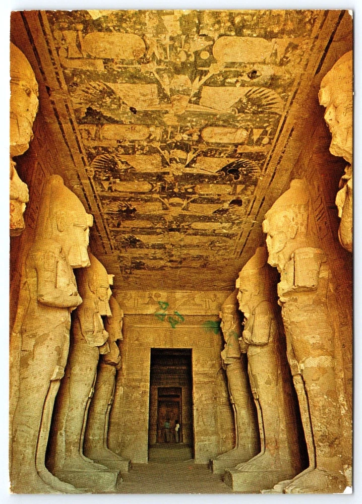 VINTAGE OLD ANTIQUE POSTCARD PICTURE PHOTO EGYPTIAN TEMPLE HALL STATUES EGYPT