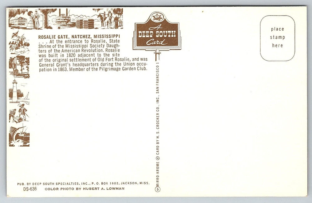 Postage Condition: Unposted Brand/Publisher: HS Crocker Stamp: No Antique: Yes Posted: No Franchise: Postcard Featured Person: None Artist: Postcard Unit of Sale: Single Unit Location: Natchez, Mississippi USA Era: Divided Back (1907-1915) Seller Notes: “Good Vintage Condition. See Pictures And Description Closely For Details.” Time Period Manufactured: NA Character: Postcard Size: Standard (5.5 x 3.5 in) Vintage: Yes Country/Region of Manufacture: United States Orientation: Horizontal Country: United States Continent: North America Features: Divided Back, Original Genuine Antique Vintage Postcard Region: Mississippi Subject: Cities & Towns Occasion: Postcard Color: Multicolor Material: Paper Signed: No Number of Items in Set: 1 Type: VINTAGE OLD ANTIQUE POSTCARD ROSALIE MANSION HOUSE GATE LANDMARK UPC: DOES NOT APPLY City: Natchez, Mississippi Signed By: None Original/Licensed Reprint: Original Finish: Glossy Theme: Architecture, Cities & Towns, Community Life, Domestic & Family Life, Famous Places, Historical Figures, Landscapes, Photographs, Roadside America, Seasons, Social History, Tourism, Postcard, Antique, Vintage, Ephemera, Collectible, Memorabilia, Old, Retro, History, Card, Mail, Paper gtin13: DOES NOT APPLY