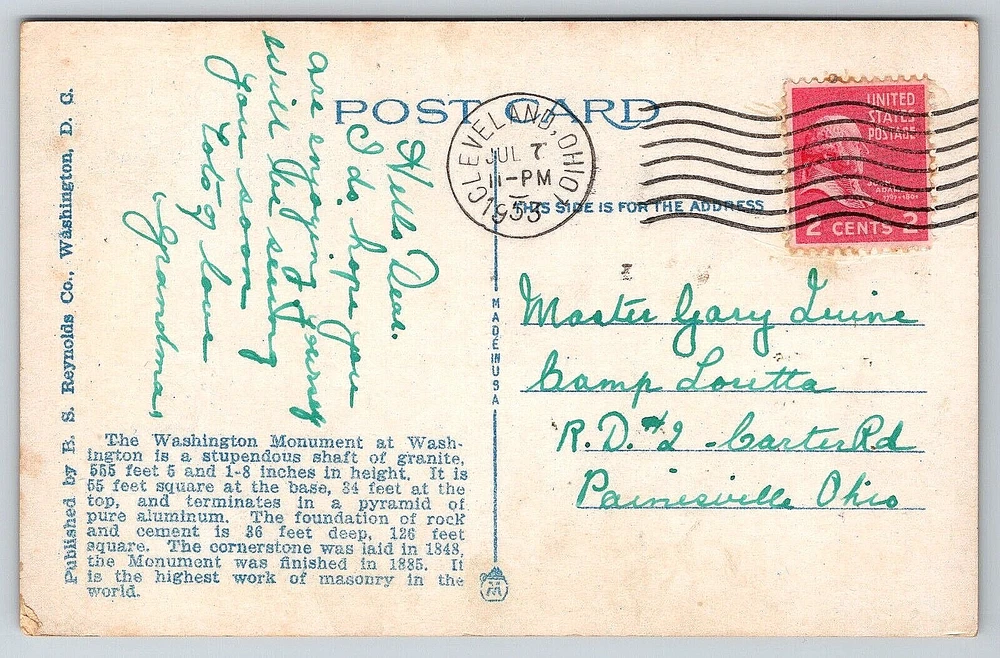 Color: Multicolor Featured Person: None Material: Paper Country/Region of Manufacture: United States Original/Licensed Reprint: Original gtin13: DOES NOT APPLY Seller Notes: “Good Vintage Condition. See Pictures And Description Closely For Details.” Features: Divided Back, Stamp, Stamped, White Border, Original Genuine Antique Vintage Postcard Posted: Yes Vintage: Yes Postage Condition: Posted Type: VINTAGE OLD ANTIQUE POSTCARD WASHINGTON MONUMENT Era: Divided Back (1907-1915) Artist: Postcard Stamp: Yes Brand/Publisher: B.S. REYNOLDS COMPANY Theme: Architecture, Cities & Towns, Community Life, Domestic & Family Life, Famous Places, Historical Figures, Landscapes, Roadside America, Seasons, Social History, Tourism, Postcard, Antique, Vintage, Ephemera, Collectible, Memorabilia, Old, Retro, History, Card, Mail, Paper Country: United States Orientation: Vertical Size: Standard (5.5 x 3.5 in) UPC: DOES NOT APPLY Signed By: Sender Location: Washington, D.C. USA Signed: Yes Continent: North America Region: District of Columbia Franchise: Postcard City: Washington, D.C. Year Manufactured: 1953 Subject: Monument Character: Postcard Time Period Manufactured: 1950-1959 Antique: Yes Occasion: Postcard Unit of Sale: Single Unit Finish: Matte Number of Items in Set: 1