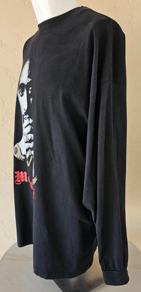UNWORN, NEVER WASHED, SECURELY STORED SINCE NEW! ULTRA-RARE, ORIGINAL, AUTHENTIC 2000s Y2K TUPAC SHAKUR w/ EMBELLISHED JEWELRY ACCENTS, RED MAKAVELI BRANDED TAG, BLACK LONG SLEEVE SHIRT IN SIZE 2XL!! This shirt has never been worn or washed! It is in NEAR-MINT/MINT CONDITION! This is embellished with simulated jewels on the watch, necklace, rings, and bracelet. (There may be just a few jewels missing, but it's very hard to tell and isn't noticeable unless inspecting extremely close) It is an incredibly soft and thick cotton blend. It looks and feels like it just came off the rack and as-new! There are no stains, holes, frays, cracking, odors, etc. The colors are bright and vivid. This comes from a smoke-free and pet-free home. THEY DON'T GET MUCH NICER THAN THIS! (See photos for details and condition - many more photos are available. Just let me know what you'd like to see.) The original red Makaveli tag is in place and perfect. Labeled size 2X. 80% Cotton, 20% Polyester. Made in Egypt. Approximate measurements are as follows: Underarm to underarm/pit to pit (laying flat): 27" (54 inch chest) Length (laying flat) Neckline to bottom hem: 31" Disclaimer: Please review the measurements and photos very carefully. This is a used shirt, and some light wear/fading should be expected unless otherwise noted above. Please ask ANY and ALL questions prior to purchasing. This sale is final, and no returns are accepted. It is guaranteed to be as described, however. Extra secure and fully insured shipping via USPS Mail. I SHIP FAST!! (Typically, the same day that payment is received) Please check out my other items for more awesome, vintage clothing and unique collectible merchandise!! Thank you for looking!