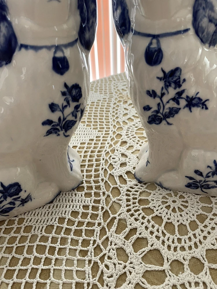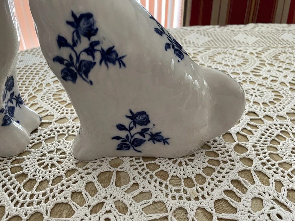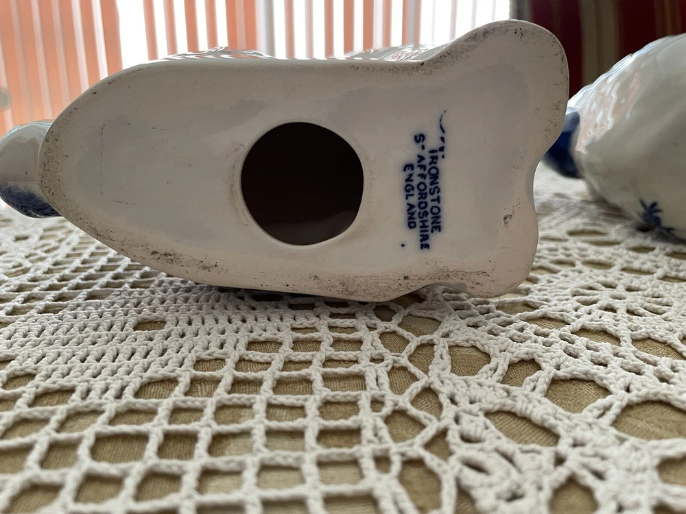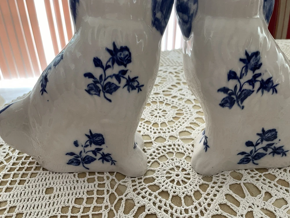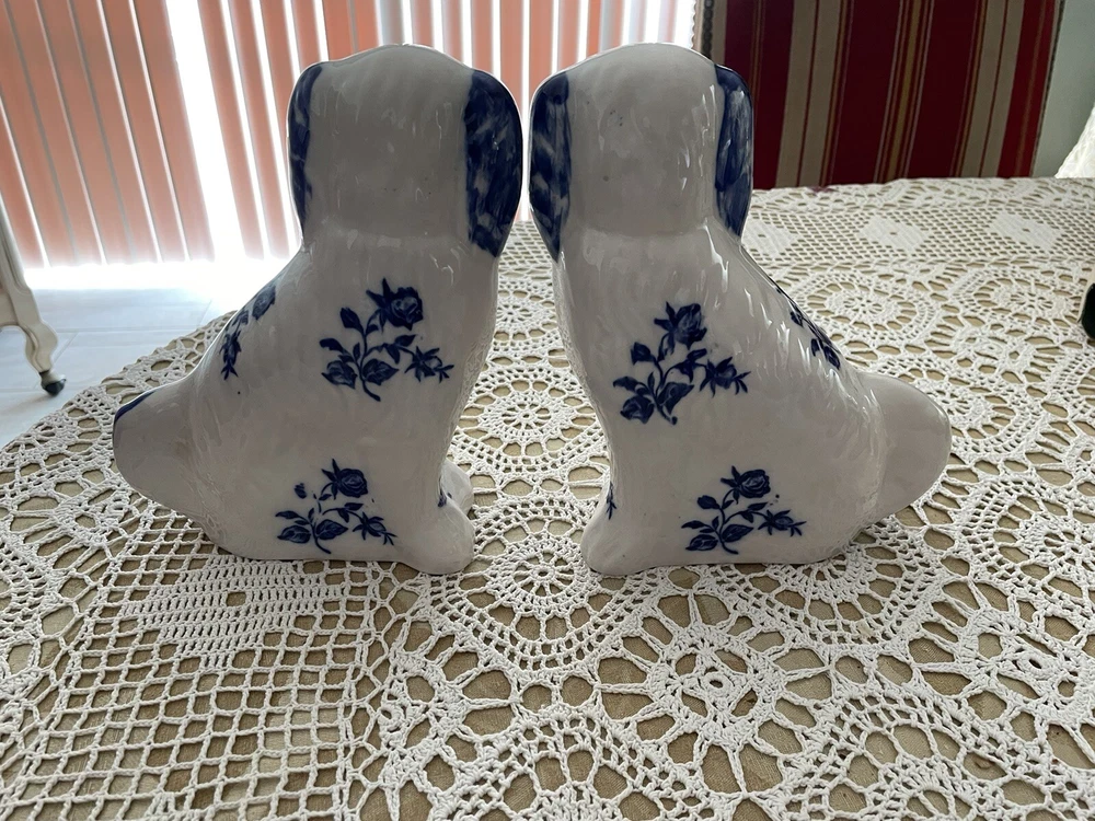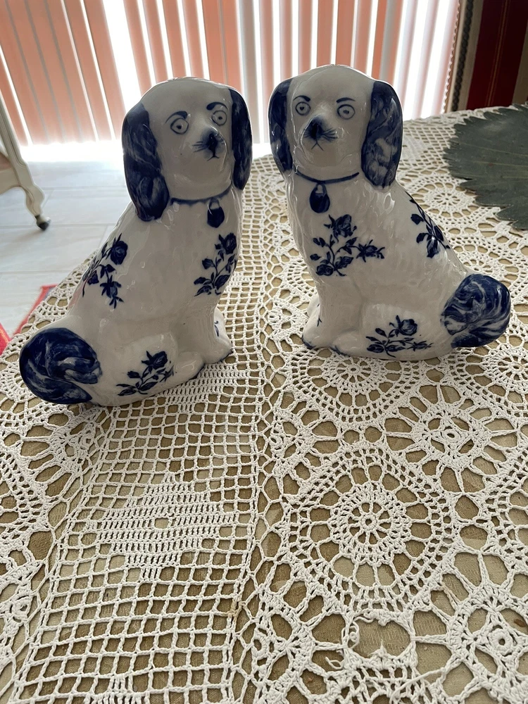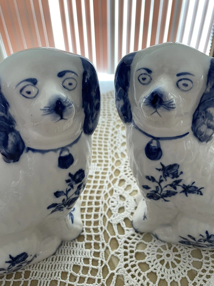 UP FOR YOUR CONSIDERATION IS A WONDERFUL PAIR OF IRONSTONE STAFFORDSHIRE FOO DOGS IN WHITE AND BLUE COLOR. BOTH OF THE DOGS AR IN EXCELLENT CONDITION AND STAND APPROX. 8" TALL.THEY ARE MARKED ON THE BOTTOM ** IRONSTONE STAFFORSHIRE ENGLAND**. PLEASE LOOK AT ALL THE PICTURES AS THEY ARE A PART OF OUR OVER ALL DESCRIPTION. IF YOU NEED TO HAVE MORE PICTURES OR HAVE ANY QUESTION, PLEASE DON'T HESITATE TO ASK!!. WE ALWAYS DO OUR BEST TO SATISFY OUR CUSTOMERS. IF YOU ARE NOT SATISFIED WITH THE MERCHANDISE YOU BOUGHT FROM US, PLEASE LET US KNOW AND WE WILL DEFINITELY FIND A WAY TO RESOLVE THIS ISSUE. IT IS IMPORTANT TO US, TO GET THE HIGHEST FEEDBACK RATING FROM ALL OF OUR CUSTOMERS. WE WOULD GREATLY APPRECIATE IT IF YOU WOULD GIVE US A 5 STAR FEEDBACK. DON'T MISS THIS ONE IT WOULD MAKE A GREAT GIFT OR WOULD ENHANCE YOUR OWN COLLECTION. THANKS FOR STOPPING BY AND HAVE A GREAT DAY!! SHIPPING AND HANDLING WE ALWAYS TRY TO DO OUR BEST TO SATISFY OUR CUSTOMERS. IF YOU ARE NOT SATISFIED WITH THE MERCHANDISE YOU BOUGHT FROM US, PLEASE LET US KNOW AND WE WILL DEFINITELY FIND A WAY TO RESOLVE THIS ISSUE. IT IS IMPORTANT TO US, TO GET THE HIGHEST FEEDBACK RATING FROM ALL OF OUR CUSTOMERS. WE WOULD BE GREATLY APPRECIATE IF YOU CAN GET US A 5 STAR FEEDBACK. WE DO SHIP USPS PRIORITY MAIL, PARCEL POST AND FEDEX. IN ALMOST ALL CASES WE USE USPS PRIORITY MAIL. HOWEVER, WE RESERVE THE RIGHT TO USE FIRST CLASS MAIL WHEN THE PACKAGE IS UNDER 13 OZ, OR PARCEL POST FOR BIG PACKAGES OR FEDEX GROUND. PAYMENT HAS TO BE RECEIVED 3 DAYS AFTER AUCTION CLOSING. WE DO ACCEPT PAYPAL !