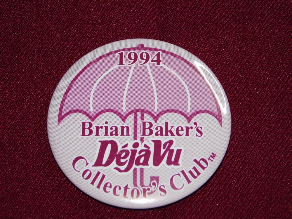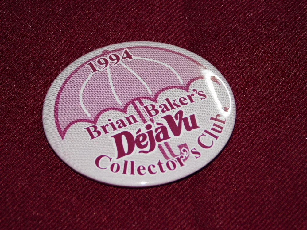 VINTAGE PIN BACK BUTTON 1994 BRIAN BAKER'S DEJA VU COLLECTOR'S CLUB