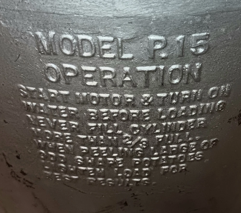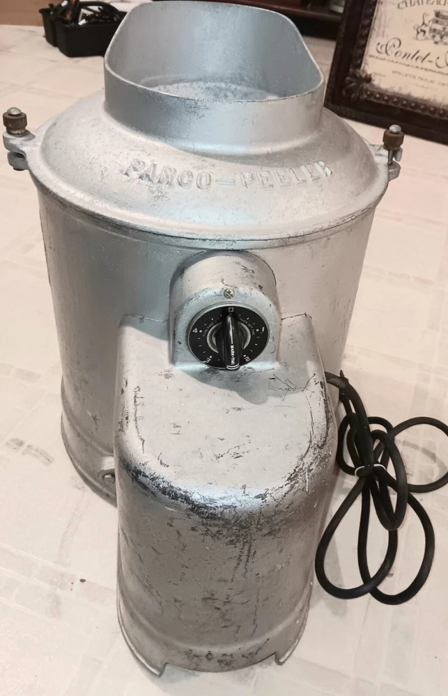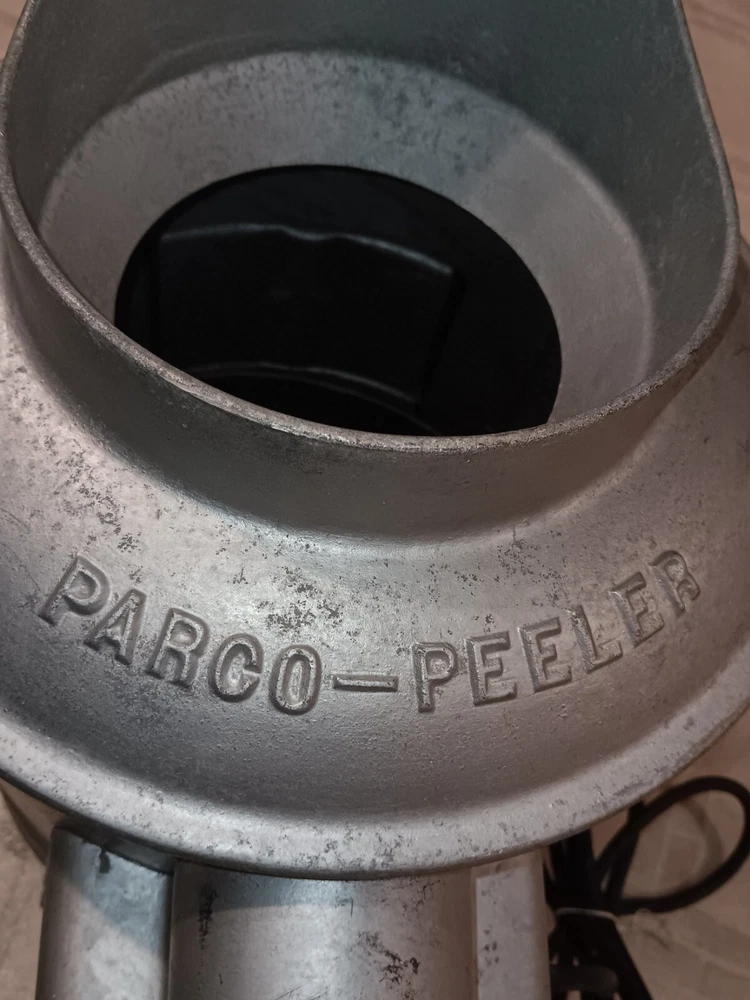 Working Parco-Peeler P.15 industrial potato peeler. Was being used up until recently and is in perfect working order with newer peeling disc. It's made out of cast aluminum and is very heavy. Shipping weight is 45 pounds, you are welcome to pick up in person in Henry, IL. I'm not sure what these sell for, make an offer. Made in Syracuse, NY by the Dade Mfg. Co.