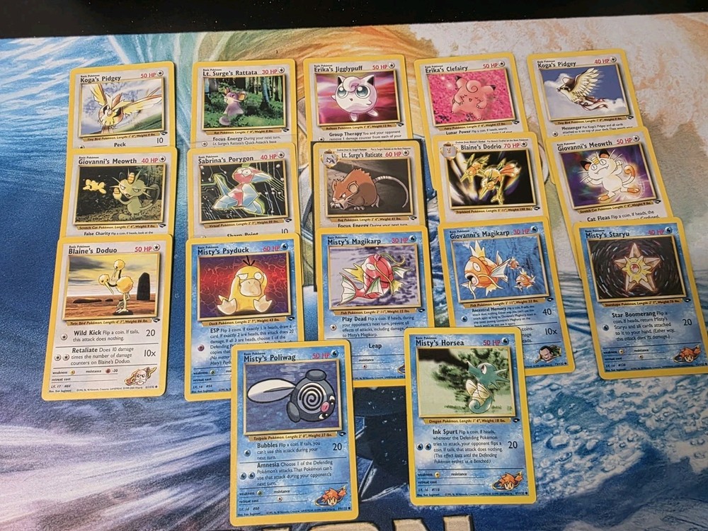 66 common uncommon and rare cards from Gym Challenge. These are leftover from making complete sets for clients. Most of these cards are in NM-LP condtition. There will be a couple MP if they were the last copy we had of the card. These cards are going up in price currently. Get them before they are even more expensive. If you have any questions please message me. Check out our other lots and sets. We try to change them out every week. Thanks!