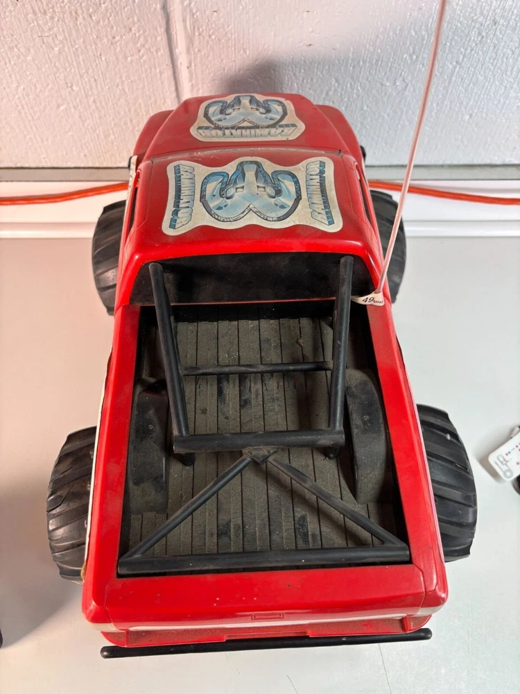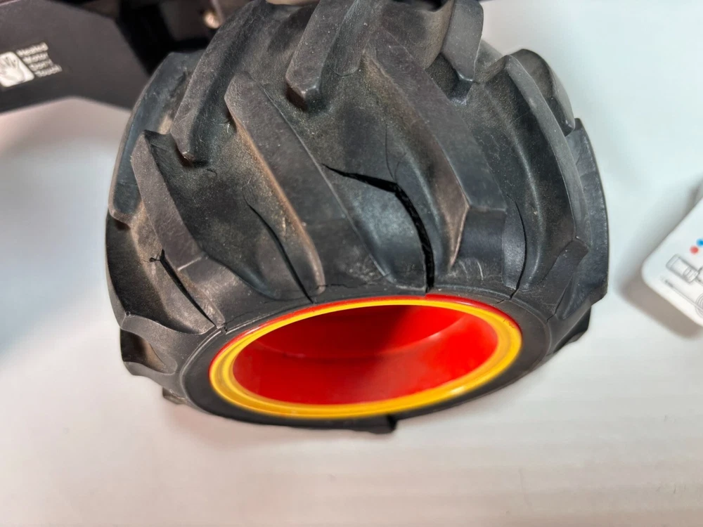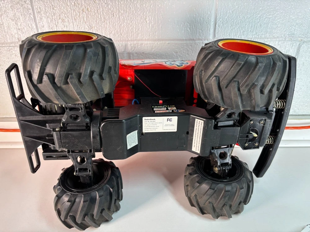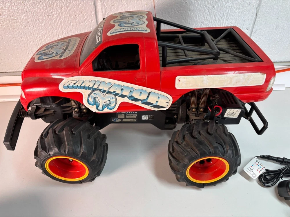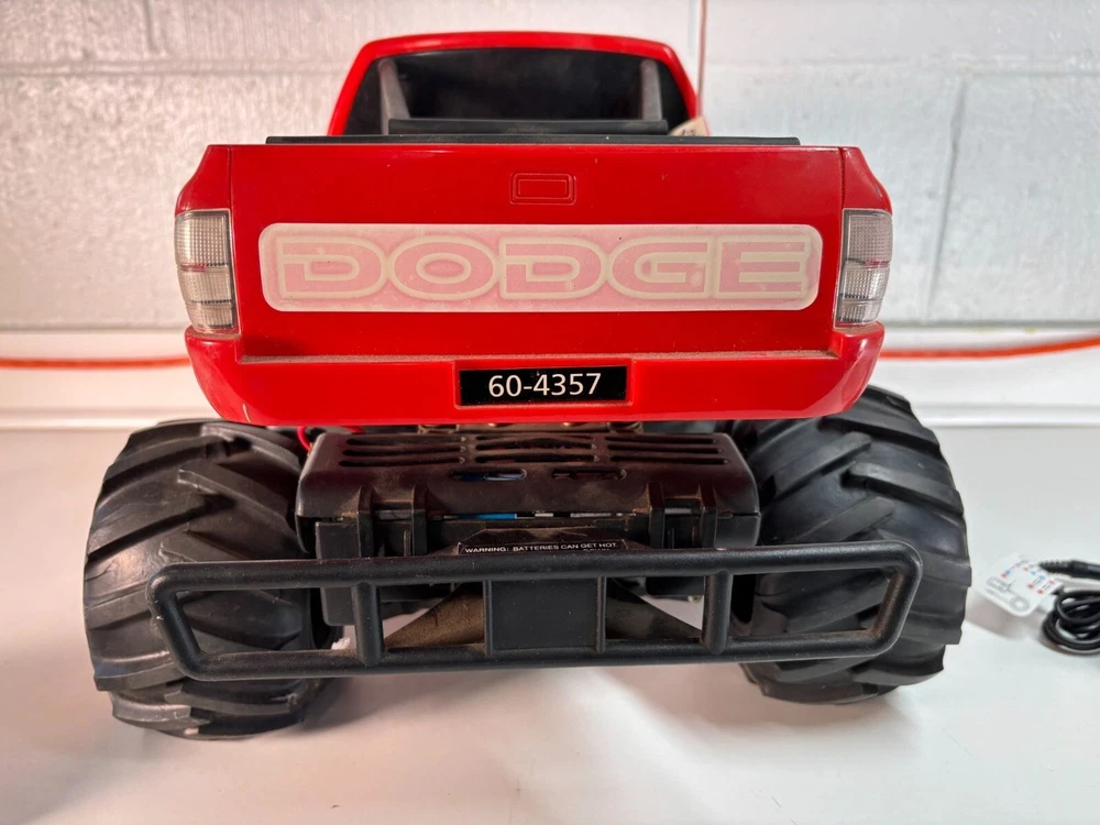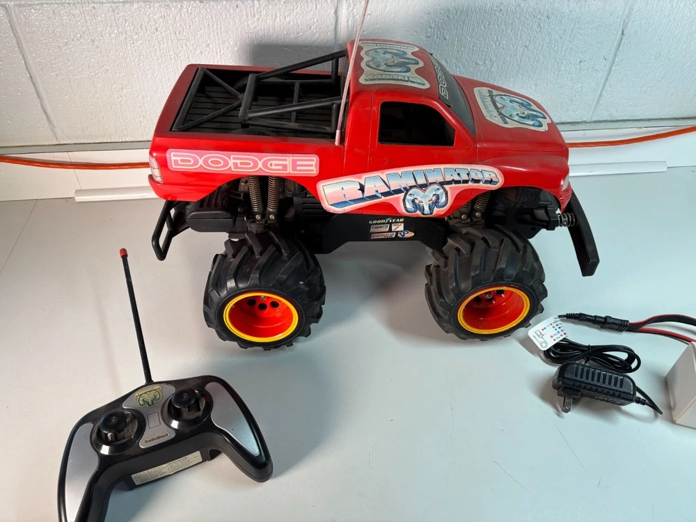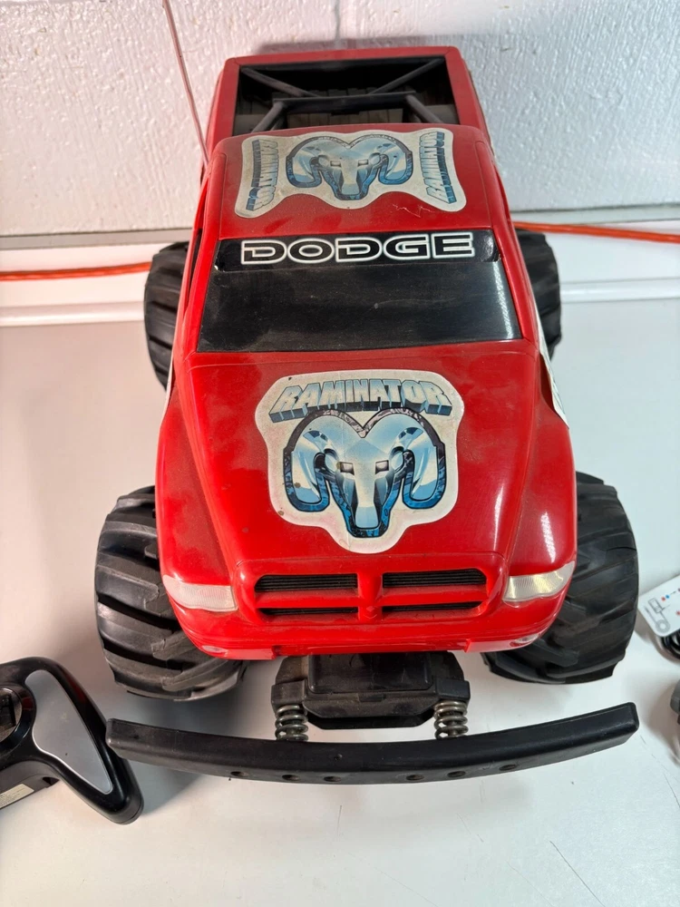 • Remote control included • Charger with cables • Durable plastic body • Oversized monster truck tires • Dodge Raminator design Light wear on body decals.