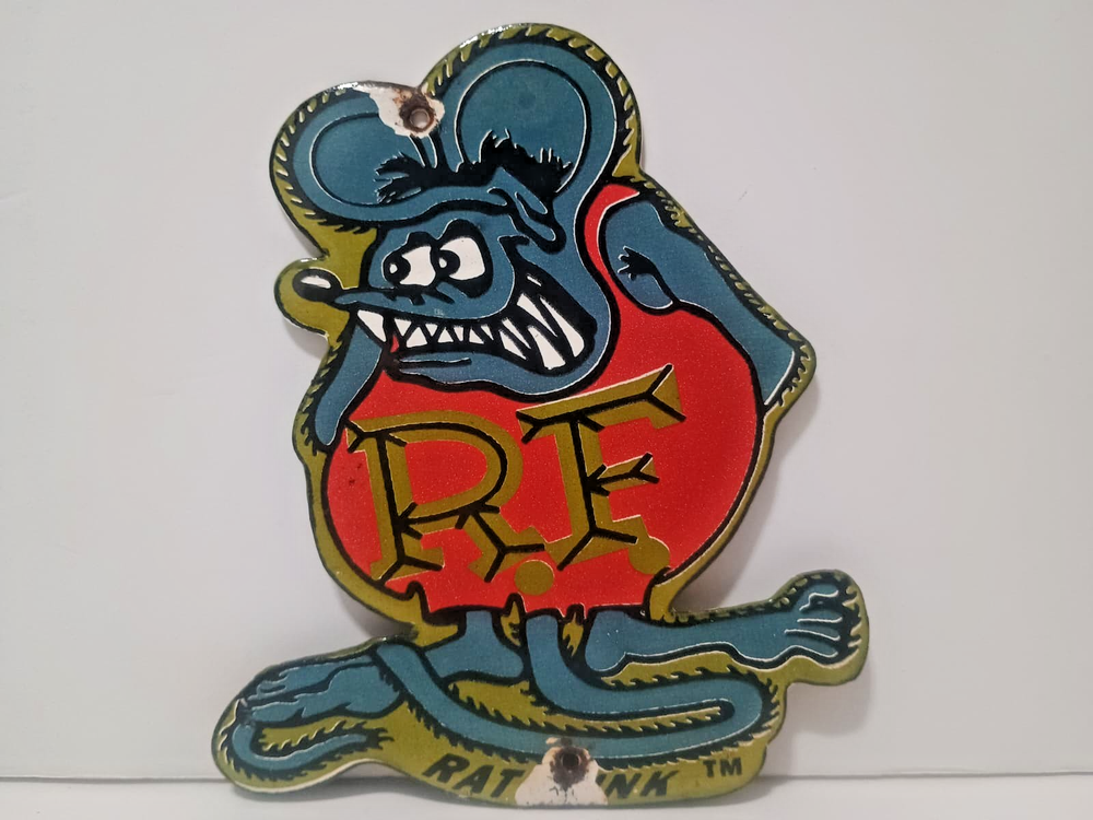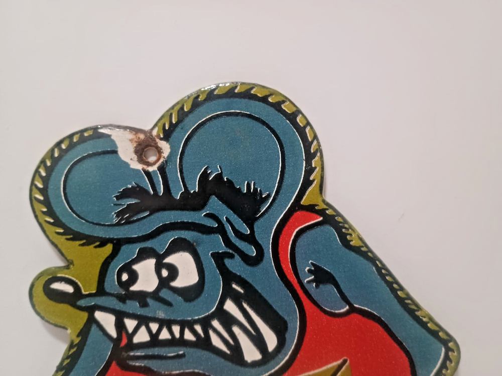 VINTAGE RAT FINK PORCELAIN ENAMEL METAL SIGN SIZE 6" x 5" INCH