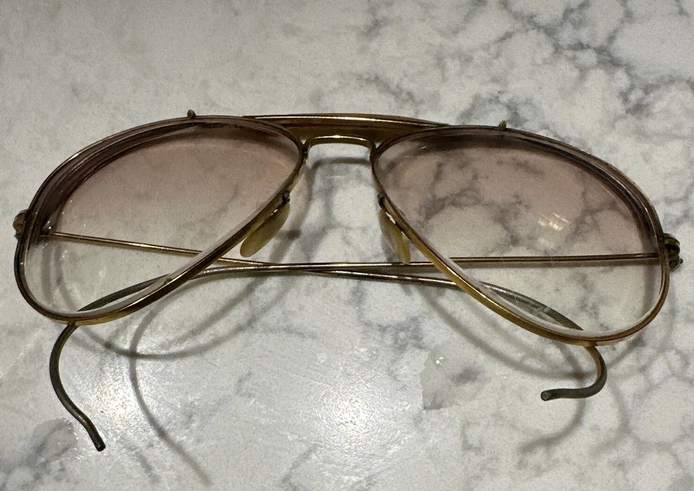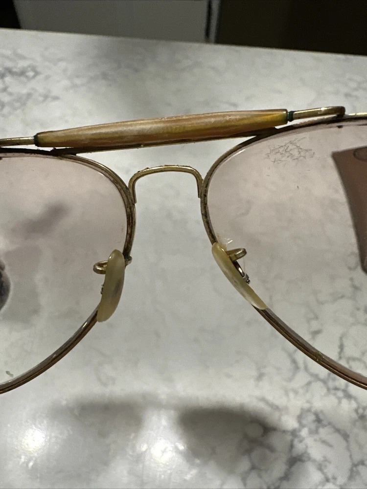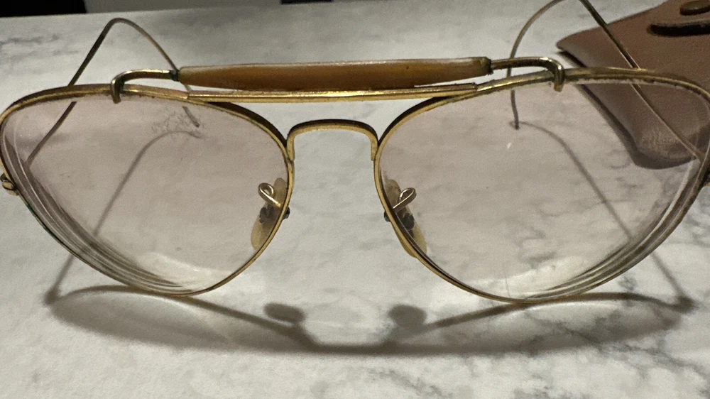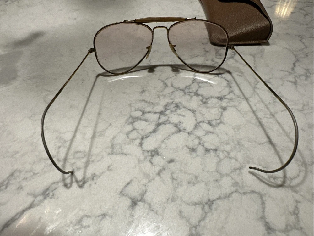 Enhance your retro original style with these original vintage Ray-Ban Aviator sunglasses. Made in the USA, these sunglasses feature a gold-plated metal alloy frame with a clear lens color and 100% UV protection. The frame color is old school gold, and the lens technology is B15 color contrast technology with UV glass lens. These lenses are prescription. The glasses are designed for men, with a size of 62mm large lens and a magnification strength of -1.5. They look super sexy on ladies too! These Ray-Ban Aviators are perfect for outdoor enthusiasts with their USA-themed design and durable frame material. They come with the original genuine ray-ban glasses case for easy storage and transportation. Get your hands on these vintage sunglasses today and add a classic touch to your style.