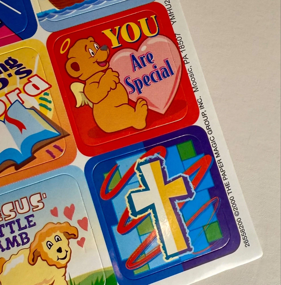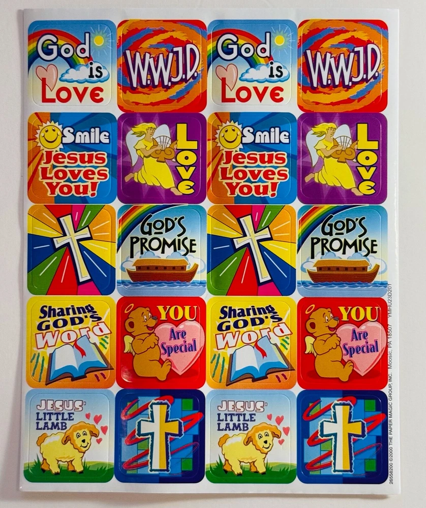Elevate your personal items with a touch of spirituality using the VINTAGE (Year 2000) Religious Faith God Jesus Rainbow Cross Lamb STICKERS Sheet. Includes: 2 New Full Sticker Sheet Qty. 40 Stickers
