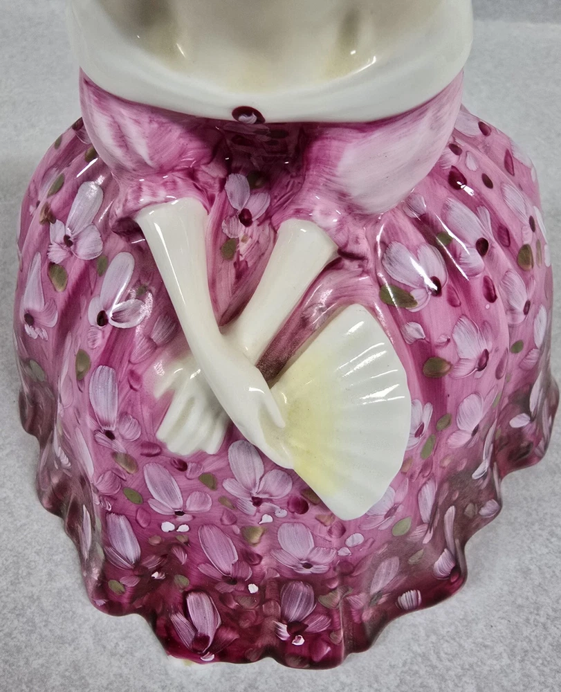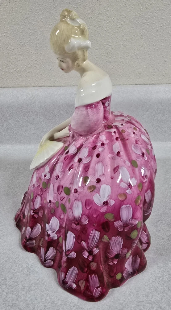 This beautiful Royal Doulton Victoria figurine is made of high-quality bone china and finished with a glossy touch, this medium-sized figurine stands at 7 inches tall and 6 inches wide. It features a lovely pink color and depicts a woman in the Victorian style. This limited edition comes unboxed and is perfect for any room or occasion. Whether you're a fan of collectibles or simply appreciate the beauty of porcelain, this Royal Doulton Victoria figurine is a great addition to any collection. There are no chips or cracks. Excellent piece. Please refer to photos for condition, please.