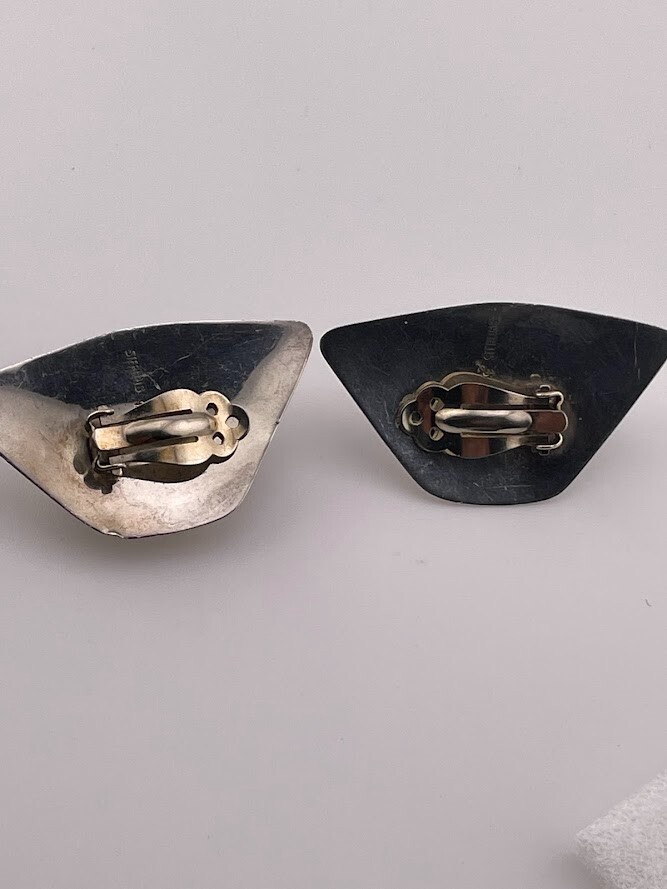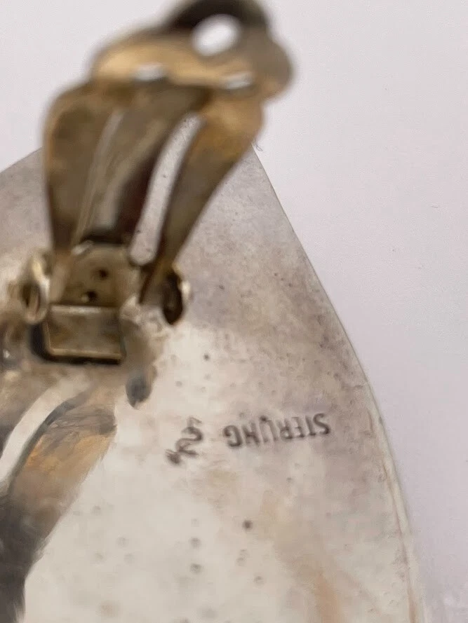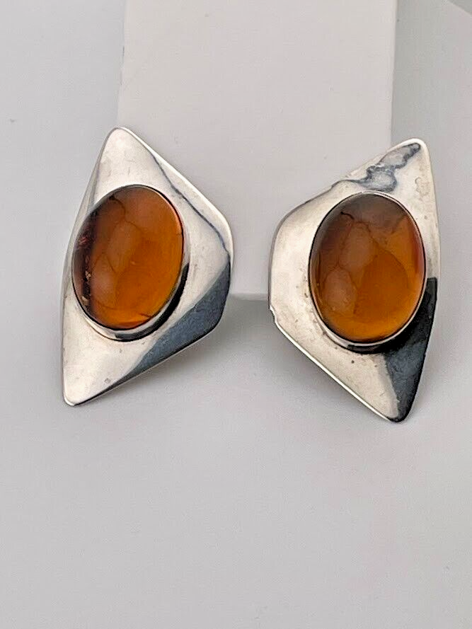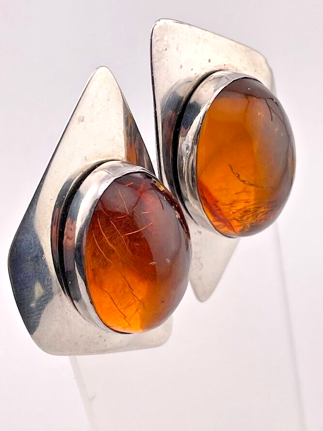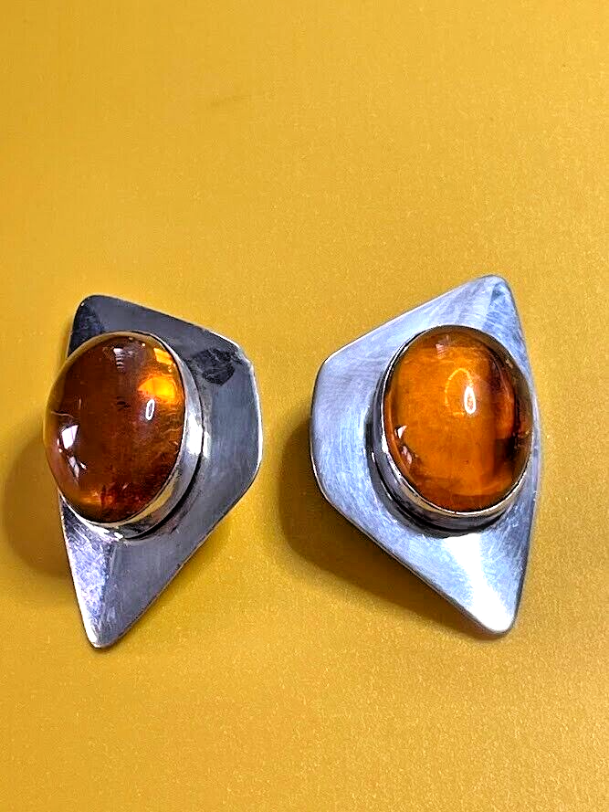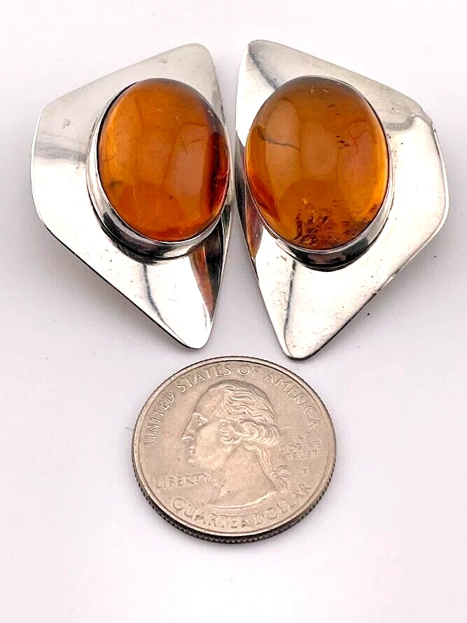 VINTAGE SAM LOVATO STERLING SILVER AMBER CLIP ON EARRINGS NATIVE AMERICAN 3590 ****************************** Thank you for your interest in our jewelry. We?d like to introduce ourselves. We are just a retired couple who love matching our customers with great jewelry. We?re not professional jewelers. To have the best shopping experience we like to recommend the following: Please measure your hand, wrist, finger or neck to ensure the best fit. We can use your measurements to help with sizing. Please ask all the questions you want. We know some stuff and, if we don?t, we?ll do the research. We like to learn too. More Stuff: If an item is described as ?gold over 925 sterling silver? this means it is gold vermeil. Vermeil is the process by which a layer of gold (usually 14k or 18k) is bonded to sterling silver. We only clean with gentle soap and warm water to avoid damage. The items we sell may be new or pre-owned and may have normal wear, slight damage, and/or tarnish. We make every effort to ensure the items we sell are as described. This includes testing to confirm metal purity if the item isn?t marked, and testing for gemstone identity. We try to put measurements in the jewelry description and include a photo of each piece with a U.S. quarter (25mm).