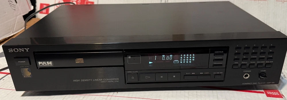 SONY CDP-491 CD PLAYER - HIGH DENSITY LINEAR CONVERTOR MADE IN JAPAN! (PLEASE SEE ALL PHOTOS.) THIS CD PLAYER HAS BEEN TESTED AND WORKS AS IT SHOULD AND SOUNDS GREAT! -THIS SET COMES WITH EVERYTHING PICTURED. (PLEASE SEE ALL PHOTOS.) THIS SET DOES NOT COME W/ A REMOTE CONTROL.. THIS WAS RARELY USED AND IS IN VERY GOOD CONDITION. TRULY SOUNDS GREAT WITH A TON OF DETAIL FOR ANY AUDIOPHILE OR MUSIC LOVER. VERY GOOD CONDITION. MINOR WEAR OTHERWISE LOOKS GREAT. THERE ARE SOME VERY MINOR SCUFFS . (PLEASE SEE ALL PHOTOS.) OTHER THEN THAT, VERY GOOD CONDITION. (PLEASE SEE ALL PHOTOS.) SHIPPING TO LOWER 48 STATES ONLY. CANNOT SHIP TO ALASKA, HAWAII, OR PUERTO RICO. I will get this delivered to you ASAP. It will be shipped out same day or next business day. Thanks for looking!!! Please take a look at my other Auction listings:) Have a great day:)