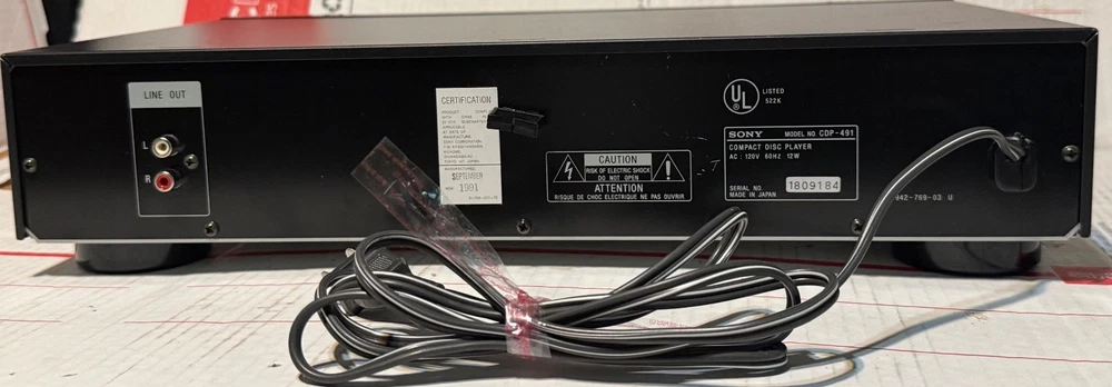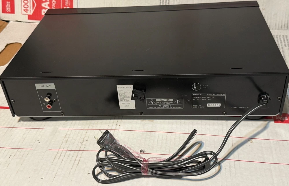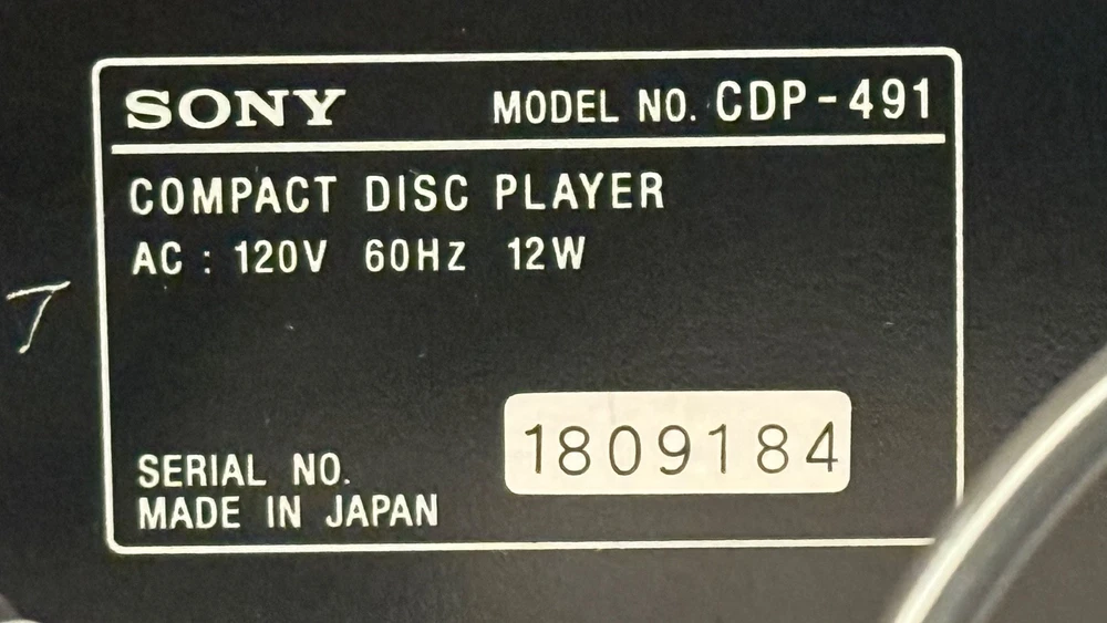 Year Manufactured: 1991 Generation: 1st Generation Model: Sony CDP-491 Connectivity: Infrared Audio Outputs: Stereo L/R RCA, Headphone Jack Country of Origin: Japan Audio Inputs: RCA MPN: 1991, CDP-491 Type: CD Player Brand: Sony Color: Black Playable Media Format: CD