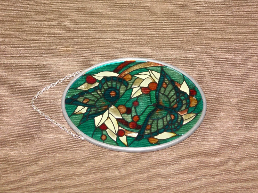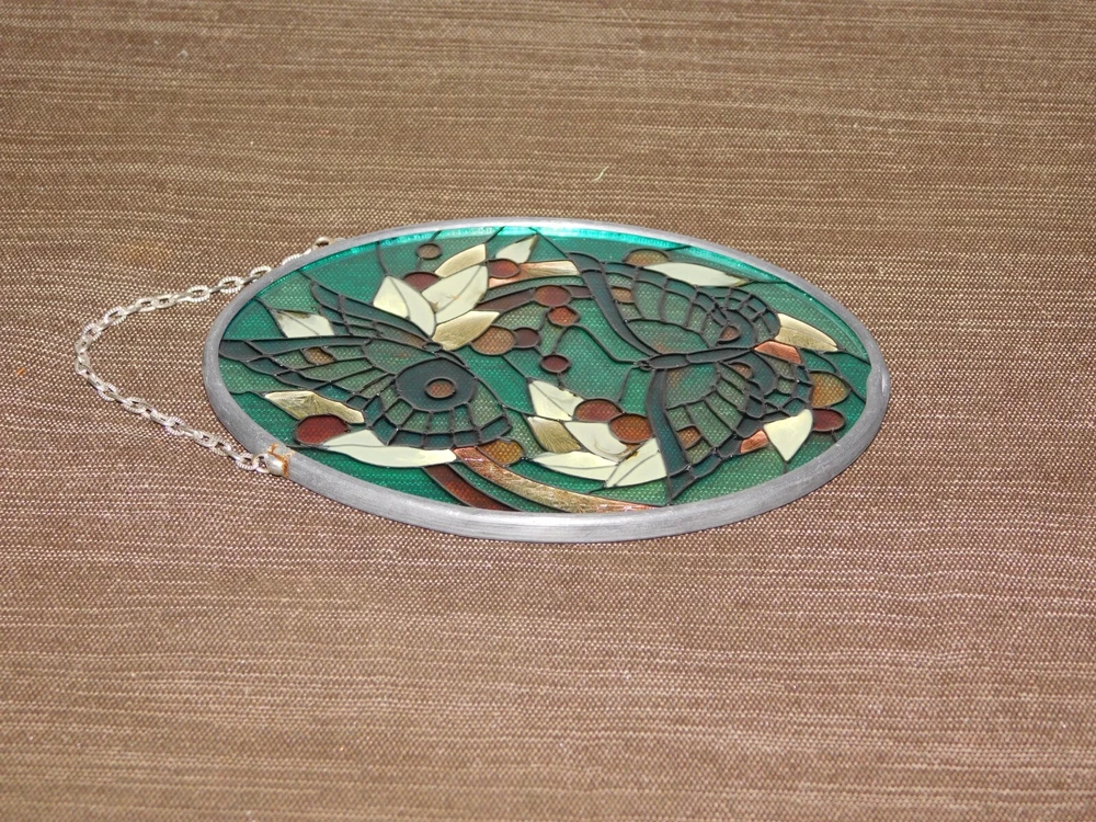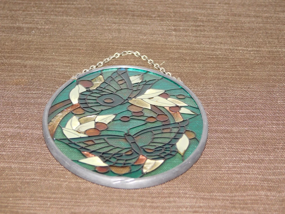 YOU ARE BIDDING ON..... VINTAGE STAINED GLASS PANEL 4 1/2" HIGH BUTTERFLY FLOWER WINDOW HANG SIGN SOME PREVIOUS DISPLAY WEAR/LIGHT SCRATCHES ... PLEASE VIEW PHOTOS FOR CONDITION.***PLEASE E-MAIL IF YOU HAVE A QUESTION OR WANT AN ADDITIONAL PICTURE....PLEASE VISIT MY EBAY STORE FOR ADDITIONAL VINTAGE ITEMS..THANK YOU***12VBX1849-XXXX