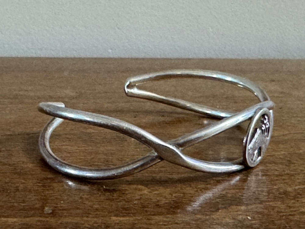 VINTAGE STERLING SILVER 925 TRIPLE CROSS OF CALVARY CUFF BRACELET – 20.8G FAITH ESTATE SALE FIND, BEAUTIFUL VINTAGE STERLING SILVER CUFF BRACELET FEATURING A TRIPLE CROSS OF CALVARY DESIGN AT CENTER. HALLMARKED "925" AND WEIGHING APPROXIMATELY 20.8 GRAMS. UNIQUE OPEN BAND STYLE WITH GRACEFUL CURVED LINES. A MEANINGFUL SYMBOL OF FAITH, THIS BRACELET IS IDEAL FOR DAILY WEAR OR GIFTING. LIGHT PATINA ,UNPOLISHED TO PRESERVE VINTAGE CHARACTER. READY TO WEAR MEASURES WITH TAPE MEASURE ON THE INSIDE 6" RIM TO RIM THANK YOU FOR LOOKING Disclaimers All items are from local estate sales and garage sales around San Diego, Ca. All items sold by us are being described to the best of our ability and with utmost conscientiousness on our part, but please know we are not experts. To avoid any potential oversights, we respectfully request your assistance in thoroughly reviewing the description, photos and asking questions prior to Buying/Bidding. Any damage will be mentioned and included in photographs. Shipping Item(s) will be shipped within 1 business day (Monday-Friday) after payment has cleared. Depending on the fragility of the item, combined shipping may not be available on all items . Please message me to discuss shipping options. Return Policy 100% Satisfaction Guaranteed. We want to ensure that you are completely satisfied with your purchase. If not, then please let us know by messaging us on eBay before leaving any feedback & allow us to work with you to completely resolve any issues that you might be facing with your order. If you feel that you got an item that is different from what you ordered or if it arrived damaged or if you have any problems with the item, please email us & we will be glad to work with you in resolving any issues. All returns must reach us within 30 days after the item was delivered to you. The items must be in their original condition when they were sent to you. We will issue you a refund within 3 business days once the item has been received. Note: Depending on the reason for return, the original cost of shipping may not be included in refund amount.