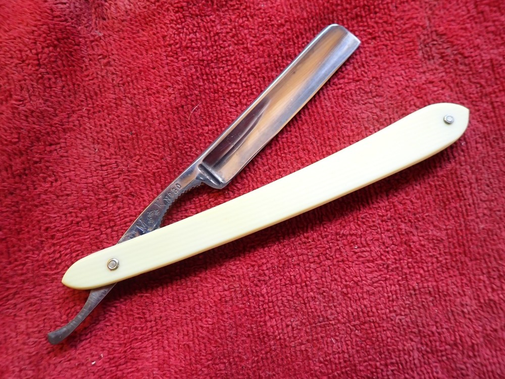 vintage Geo. Worthington, Cleveland, Ohio straight razor with whitish handle