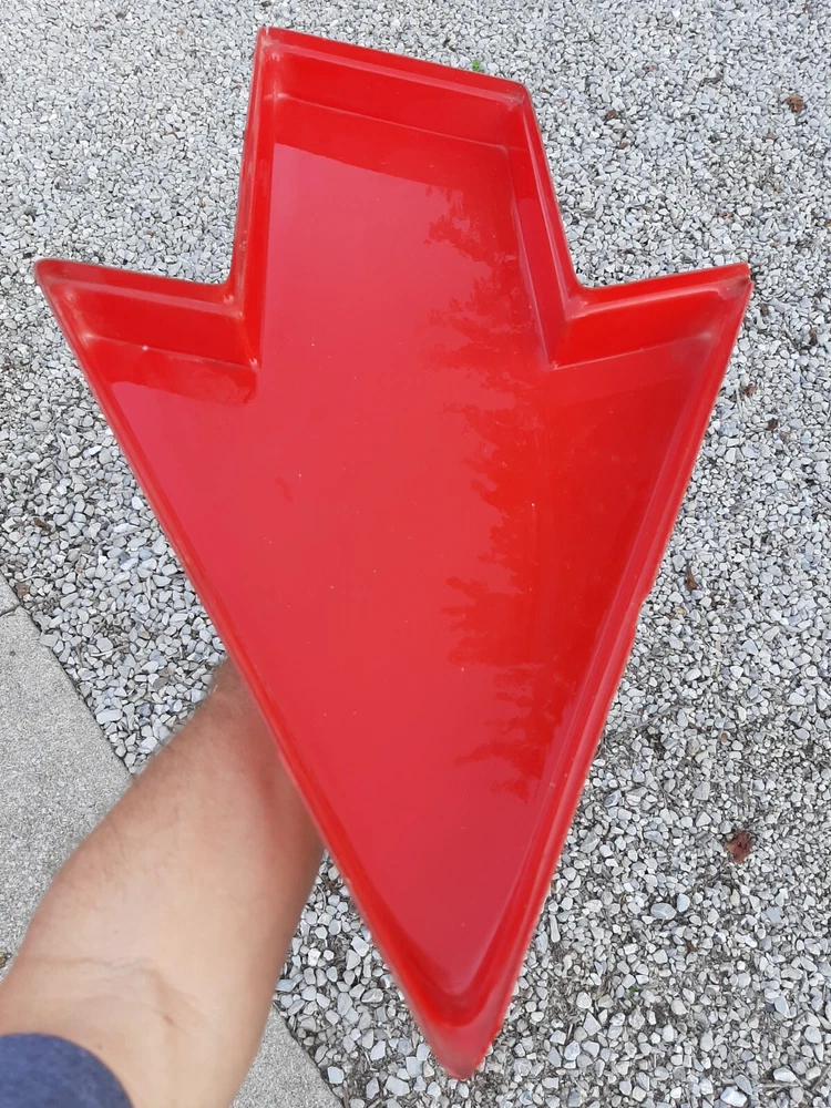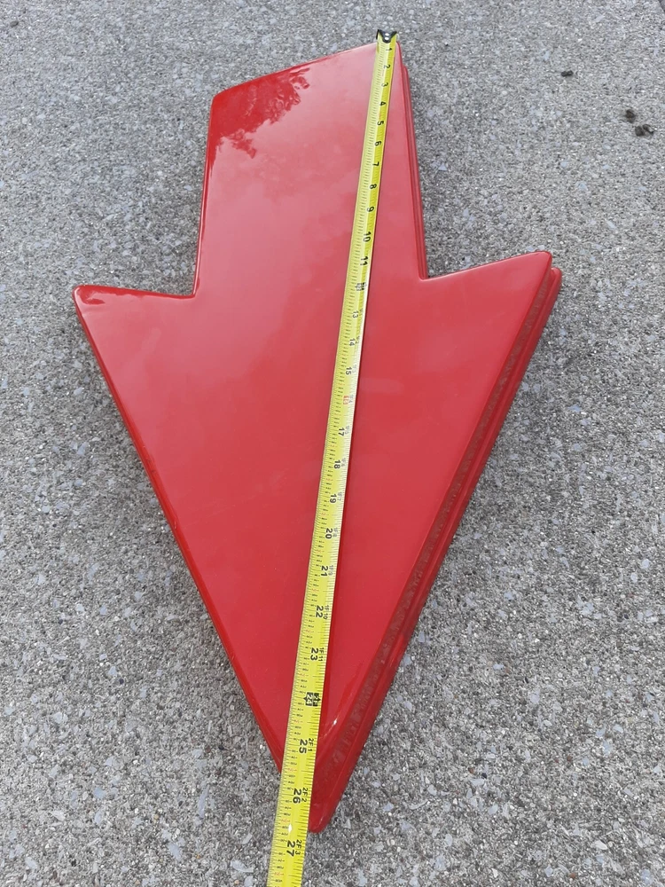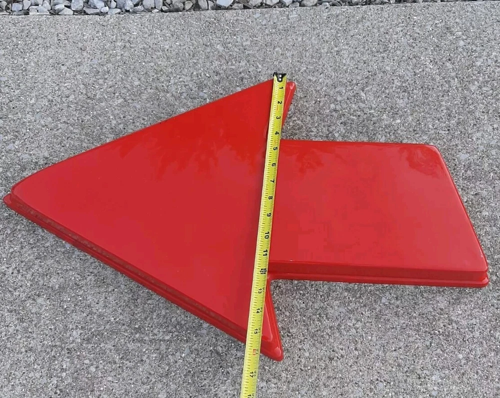 Up for sale i have 1 red plexiglass arrow point from an old Sunoco sign. This item has dirt, scuffs and wear but still looks really good. It has some chips around the bottom edge that wouldnt be visible in a sign. There are no holes or cracks. It measures approximately 16" × 26". This came from the old Sunoco station in Monticello Indiana. You will be getting the exact piece pictured in this listing, no other parts or pieces are included. With a little cleaning this will be a nice piece to hang on the wall. Local pickup is welcome if you live close to Lafayette Indiana and want to save on shipping.