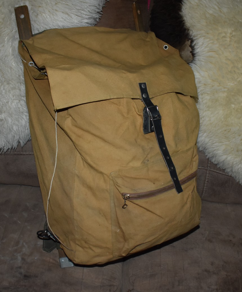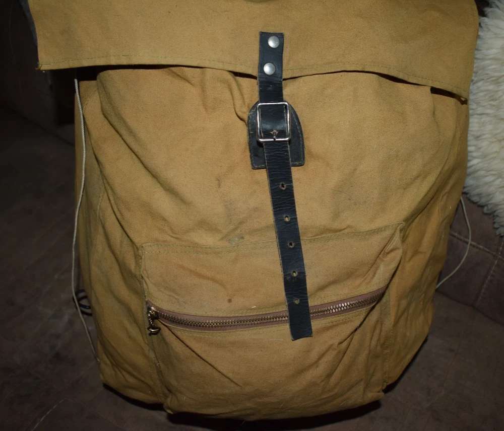 Color: Beige Insect Repellent Treated: No Sport/Activity: Hiking Country of Origin: United States Department: Unisex Adults Personalized: No Brand: Unbranded Number of Pockets: 2 Size: Medium Seller Notes: “Great, used, see all pictures and description.” Handle/Strap Material: Canvas, Leather Vintage: Yes Trim Material: Canvas, Leather Material: Canvas, Leather