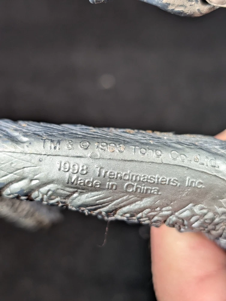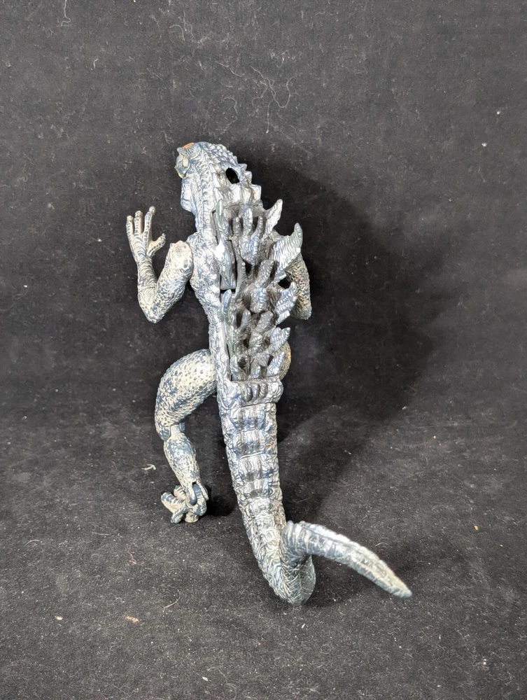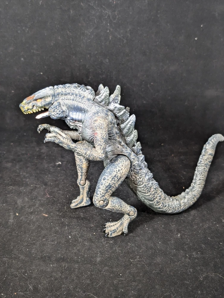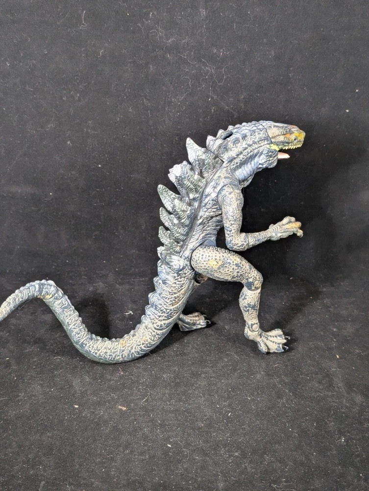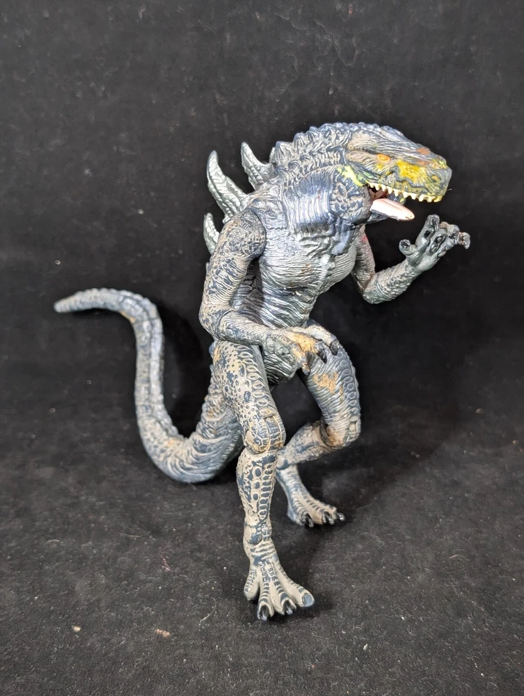 This vintage Trendmasters Godzilla action figure features the iconic movie monster in a fierce fang bite action pose, measuring 10 inches tall. Made of durable plastic material, this figure is a must-have for any Godzilla fan or collector. The gray color and detailed design make it a great addition to any display. With its vintage status and 1998 year of manufacture, this Godzilla figure is a unique piece that captures the essence of the franchise. The figure is part of the Godzilla series and is perfect for fans of the movies and action figures. Add this piece to your collection today and experience the thrill of Godzilla. See photos for detail.