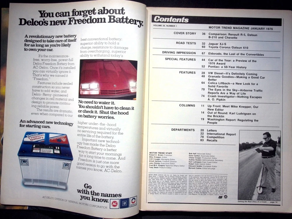 VINTAGE VW DIESEL - MOTOR TREND MAGAZINE, JANUARY 1976 VOLUME 28, NUMBER 1