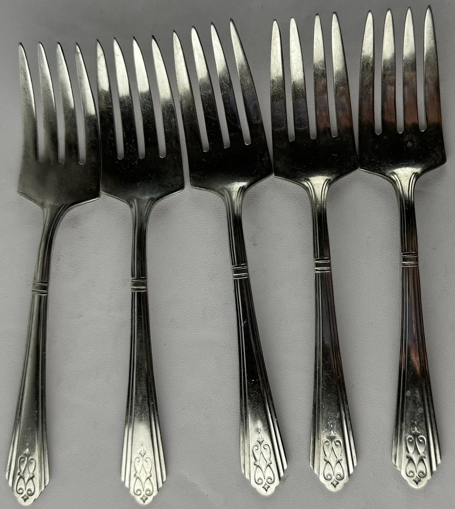 VINTAGE Winthrop DREXEL Silverplate 5pc Crusader Salad Dessert Forks 6 1/8” 1929