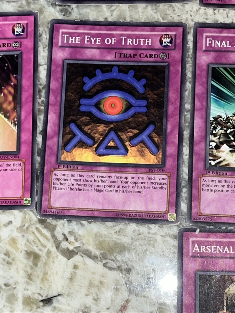 Year Manufactured: 1996 Set: Invasion of Chaos, Legend of Blue Eyes White Dragon, Magician's Force, Metal Raiders, Pharaoh's Servant, Pharaonic Guardian Vintage: Yes Manufacturer: Konami Features: 1st Edition, Unlimited Age Level: 8+ Attribute/MTG:Color: Dark, Light, Dragon Language: English Number of Cards: 57 Card Type: Effect, Fusion, Trap, Union Card Size: Standard Game: Yu-Gi-Oh! TCG Finish: Foil, Holo, Regular Card Condition: Excellent