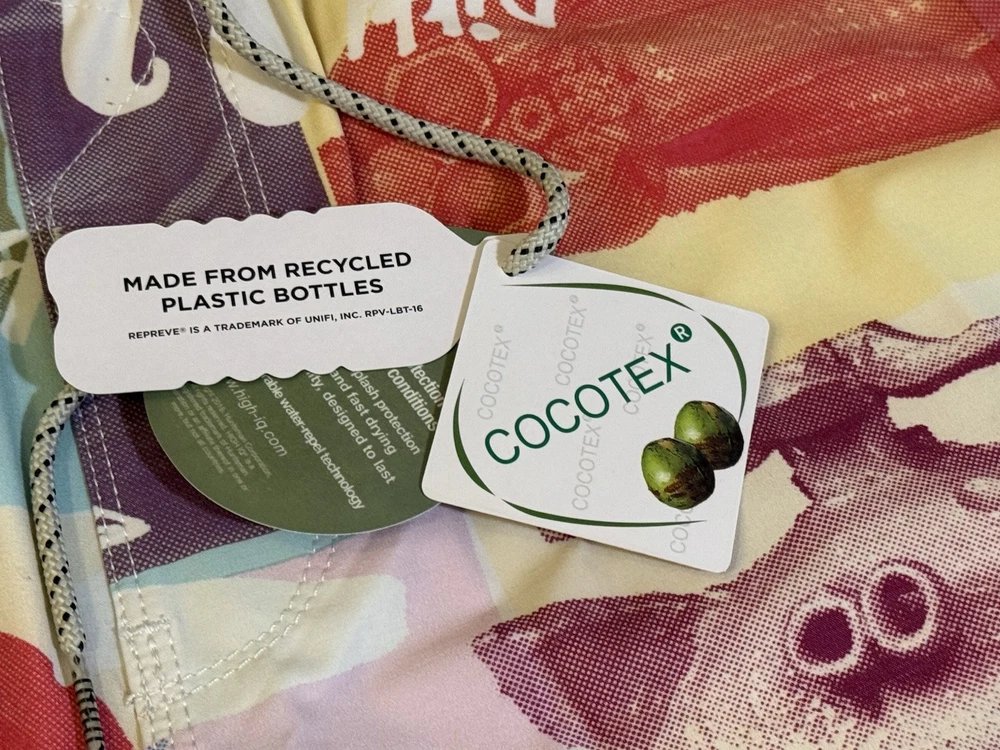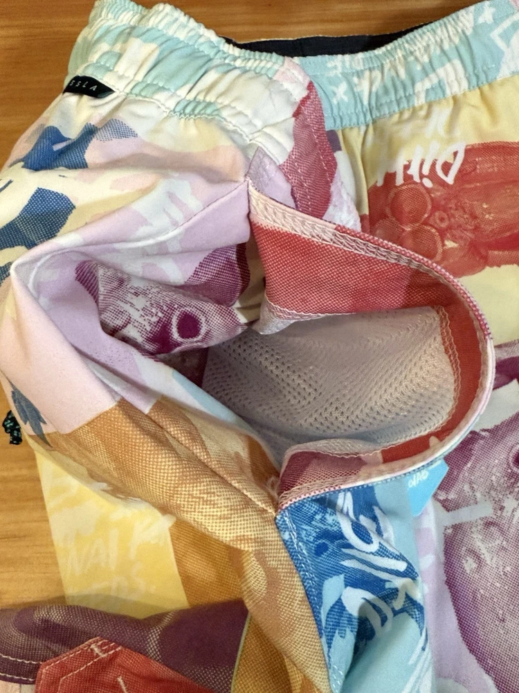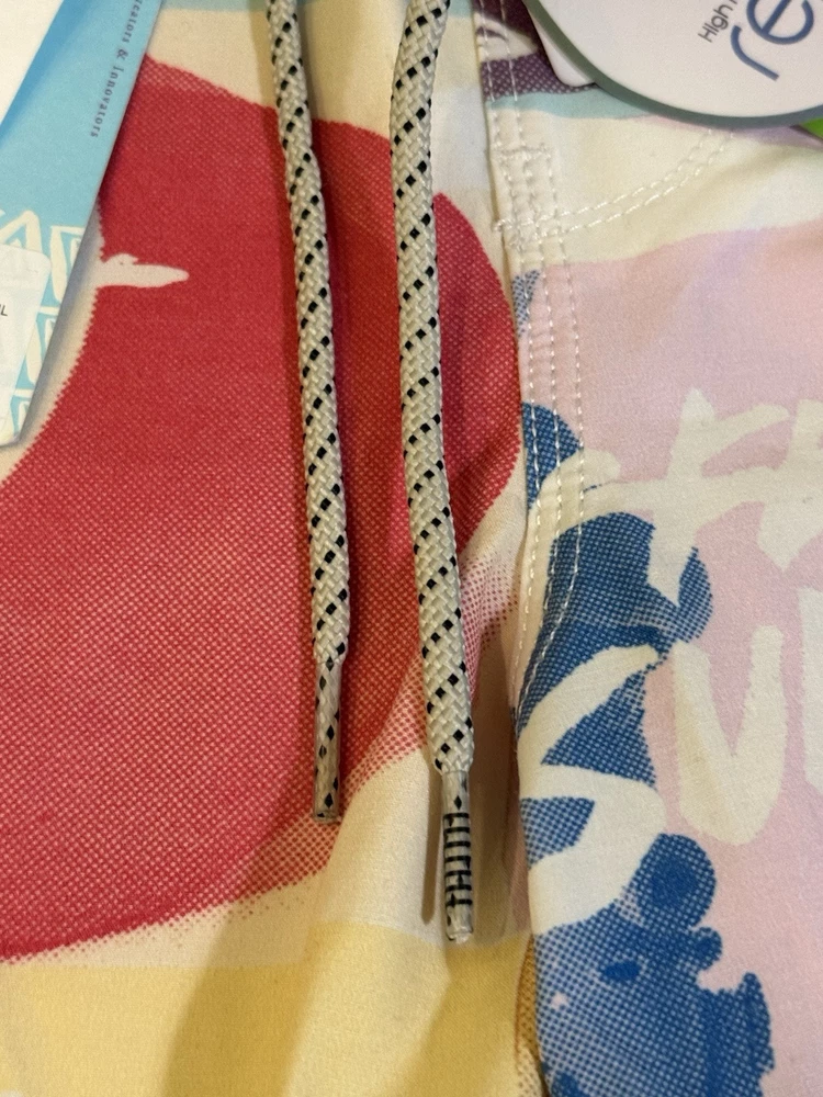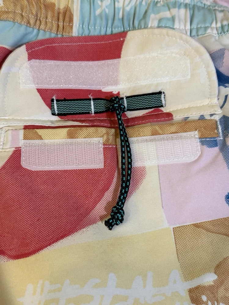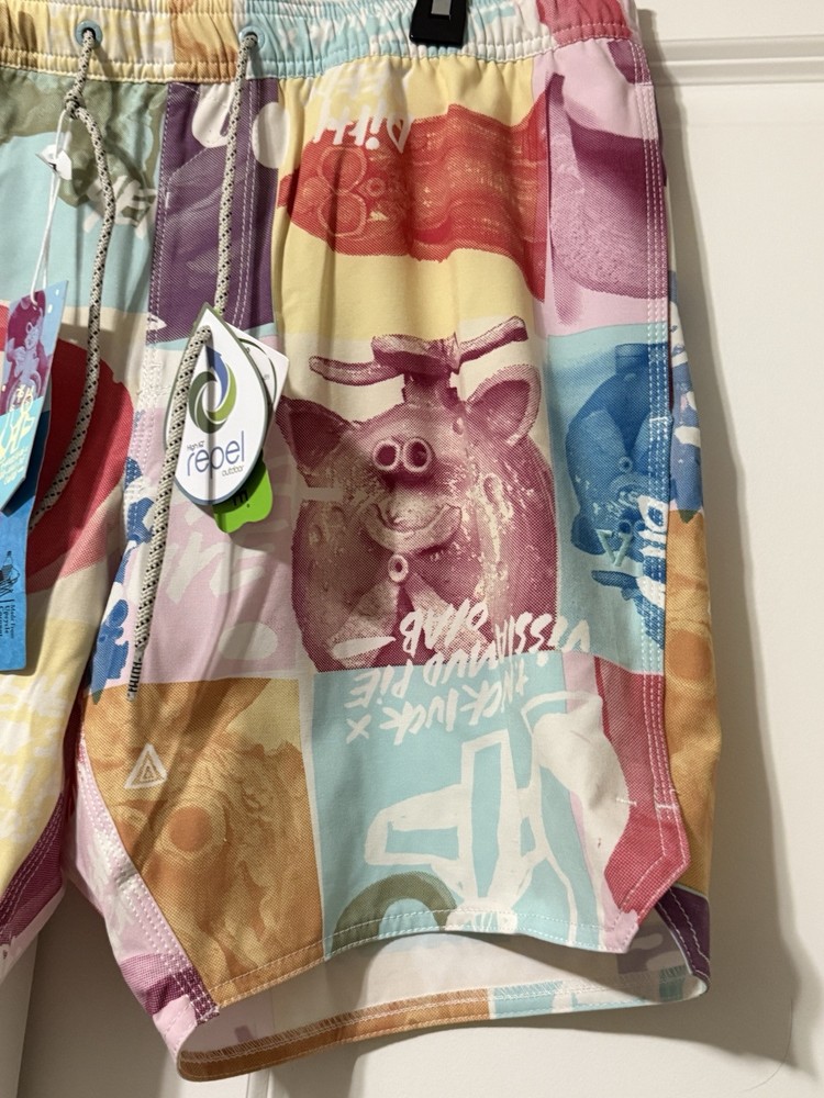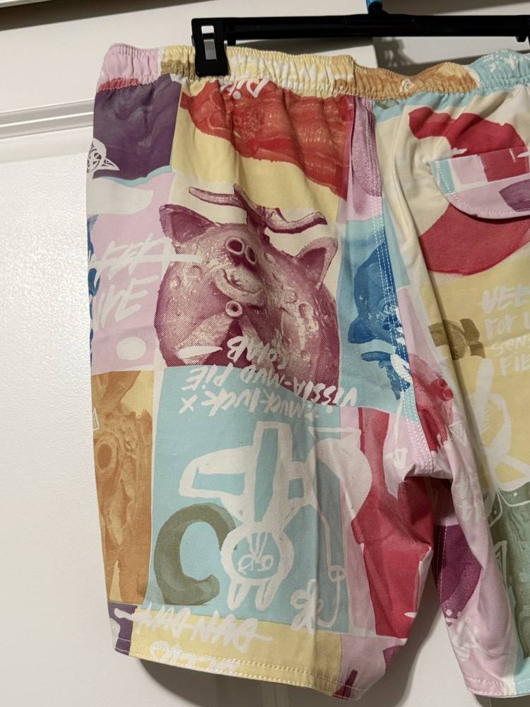 Make a splash with these colorful Vissla board shorts! Designed with an elastic waistband, these shorts offer both comfort and style for any beach activity. The multicolor design and beach theme make them perfect for surfing or recreational use. These shorts are made in China and come in a size Large. The Vissla brand is known for their high-quality swimwear, and these board shorts are no exception. They are perfect for any man who wants to look great while hitting the waves. The swim bottom style is a board short, and they feature an elastic waistband for a comfortable fit. These shorts are lined, but the lining material is not specified. The TC MUD FLAPPERS 16.5 style adds a unique touch to these shorts, making them a must-have for any swimwear collection.