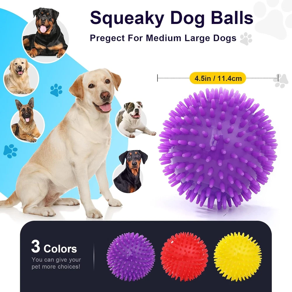 Store New Arrivals Add to Favorite View Feedback Contact VITEVER 3 Colors 4.5” Heavy Duty Squeaky Dog Toy Balls for Medium Large Dogs, Dog Chew Toys for Teething, Spiky Dog Balls for Aggressive Chewers, Durable Dog Toys for Teeth Cleaning and Training Description Item model number DGCQ-3-XCC Manufacturer VITEVER Style Durable Item Dimensions LxWxH 4.5 x 4.5 x 4.5 inches Brand Name VITEVER Color Red, Purple, Yellow Product Dimensions 4.5 x 4.5 x 4.5 inches; 13.19 ounces Material TRP rubber Item Weight 13.19 ounces Size Large Set of 3 Target Audience Keyword dogs Model Name DGCQ-3-XCC Breed Recommendation Large Breeds, Medium Breeds Item Package Dimensions L x W x H 12.64 x 4.49 x 4.41 inches Number of Items 3 Anti-Damage Design: This is a spikey dog ball specially designed for large aggressive chewing dogs. We have optimized the size and quality, improved the wall thickness and material grade of the product, so that the dog ball can remain intact for a long time in front of aggressive chewing dogs, and it is very durable. Multiple Color Options: This package includes 3 dog balls and each one is 4.5” in diameter. All balls are different and brightly colored, containing red, purple and yellow. Healthy & Safety: Made from food- grade TRP rubber, these puppy toys are BPA-free, non-toxic and odorless. Elastic spikes on the surface of the pet toys encourage your dog to chew and grind while promoting healthy gums. The choke-free design allows your pets to play and chase safely indoors and outdoors. Multi-Purpose: Virtually indestructible dog toy designed for multi-faceted pleasure, enticing dogs to chew and drag. This dog toy has a texture similar to a licking pad, which is very stimulating and attractive for the dog, and make them really excited. Lightweight squeaky spike dog toy is easy to carry so you can interact with your furry friends outside. Gentle Reminder: It is recommended to rinse and air dry for a few hours after receiving the product so that the smell will basically disappear. If there is any problem, we will give you a satisfactory solution. Product Description Fun toys: This dog toys has a texture similar to a licking pad, which is very stimulating and attractive for the dog, and make them really excited. Anti-Damage Design: This is a dog ball specially designed for large aggressive chewing dogs. We have optimized the size and quality, improved the wall thickness and material grade of the product Healthy & Safety: Made from food- grade TRP rubber, these puppy toys are BPA-free, non-toxic and odorless. The choke-free design allows your pets to play and chase safely indoors and outdoors. ABOUT US We offer the best prices around on high quality products. Our E-store includes media such as books, movies, music and games while offering electronics, toys, sporting apparel, clothing, tools, general home, garden items and more. SHIPPING We are always working hard to ensure your package arrives as soon as possible. Please understand that some factors like weather, high postal traffic, and the performance of shipping companies are outside of our control. RETURNS We offer a 30-Day Return Policy on items which you are not completely satisfied with. You have the option for a full-refund or an exchange of the item. No returns are available on items shipped outside of the USA. PAYMENT We accept PayPal. CONTACT US This page content is yet to come Please ad us to your favorite seller and visit again later Thank You CUSTOMER SATISFACTION We try our very best to make sure every customer is completely satisfied. If there's a problem, message us! We're happy to help.