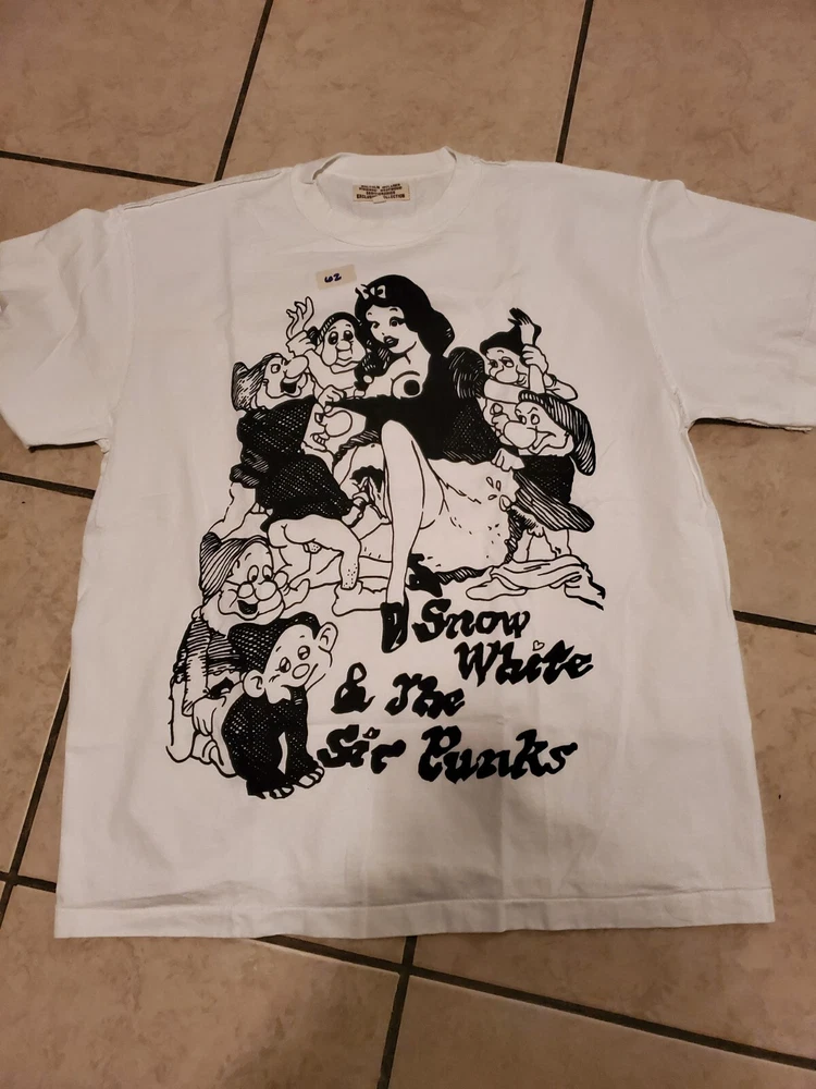 VIVIENNE WESTWOOD X MALCOM MCLAREN X SEDITIONARIES “SNOW WHITE & THE SIR PUNKS” T-Shirt SZ X-LARGE NEW WITH OUT TAGS SEX PISTOLS ---MODERN--- Show off your love for punk rock with this Vivienne Westwood Malcolm McLaren Seditionaries Snow White The Sir Punks T-Shirt. Made of breathable cotton material, this white crew neck T-shirt features a graphic print of Snow White and the seven dwarfs with a punk twist. The short sleeve T-shirt is perfect for any season, whether it's winter, summer, fall, or spring. This XL T-shirt fits regular and is perfect for men who want to add a touch of punk rock to their wardrobe. The T-shirt is made in unknown country/region of manufacture and is not considered vintage. Don't miss out on the opportunity to own this unique and trendy piece.