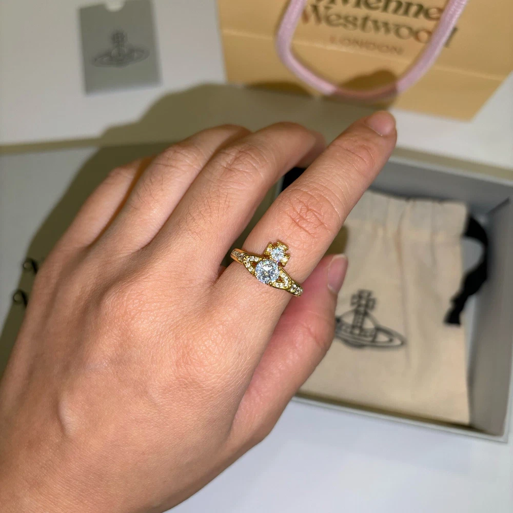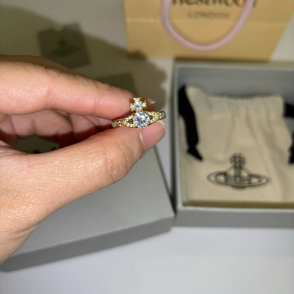 VIVIENNE WESTWOOD Square Princess Cut Crystal Ring size 7 Gift Box 203