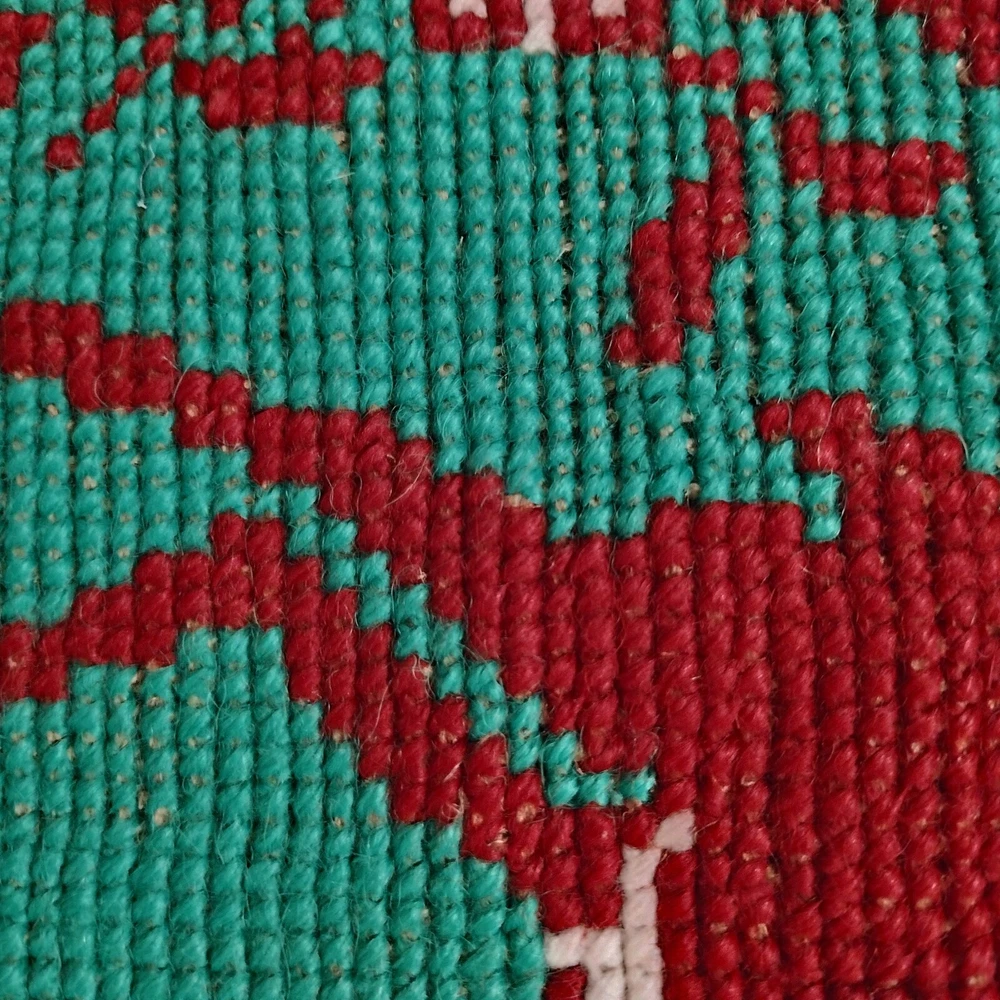VIntage Finished Needlepoint of a reindeer with fringe, probably a wall hanging or doily ? Not sure. But nice for Christmas and measures 12.5 x 12.5 inches, the stitch is larger than a needlepoint stitch and looks like it goes up and down rather than on an angle, Thanks!