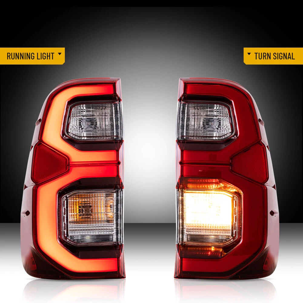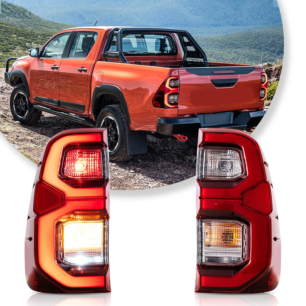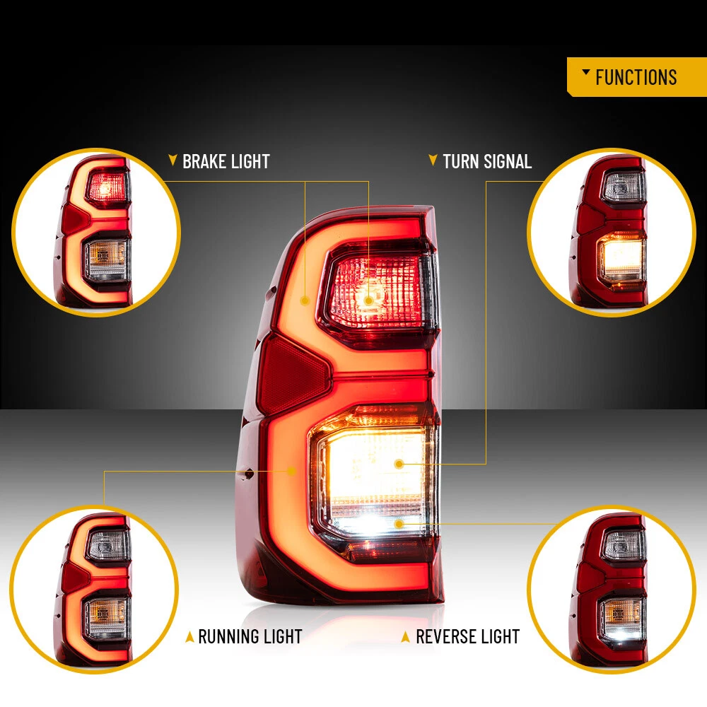 VLAND Full LED Tail Lights For Toyota Hilux 2015-2020 Red Lens Plug and Play Set
