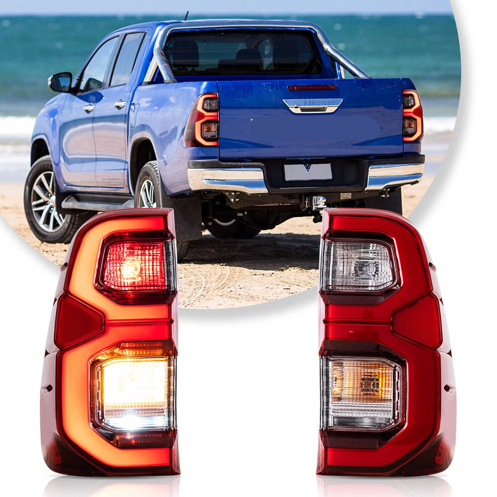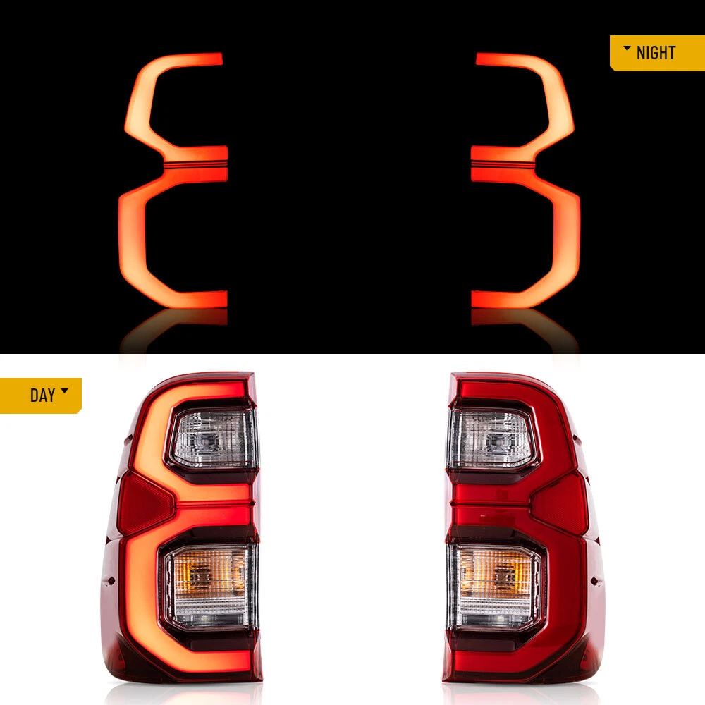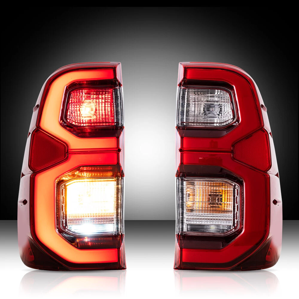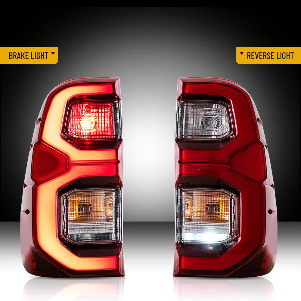 VLAND Full LED Tail Lights For Toyota Hilux 2015-2020 Red Lens Plug and Play Set