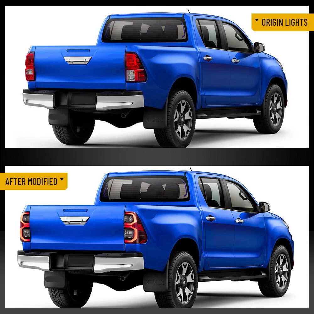 Performance Part: Yes Placement on Vehicle: Inner, Left, Outer, Rear, Right Brake Light Type: LED Plug and Play: Yes Brand: VLAND Gross weight: 12.8 lbs. OE/OEM Part Number: VK-YAB-VG-2052-R Reverse Light Type: LED Country/Region of Manufacture: China Item Length: 22.5 inch (Package Size) Light Color: Red Assembly Type: Sealed Item Height: 10.3 inch (Package Size) Modification Description: Plug and Play Features: Sealed Assembly Modified Item: Yes Model: Toyota Hilux 2015-2020 Lighting Technology: LED Lens Color: Smoke/Tinted Item Width: 18.9 inch (Package Size) Housing Color: Black Number of Bulbs: 4 Voltage: 12 V Fitment Type: Performance/Custom Bulb Shape Code: LED Running Light Type: LED Bulb Size: Built-in Full LED Manufacturer Warranty: 1 Year Universal Fitment: No Mounting Style: Screws Type: Tail Light Assembly Items Included: Bulbs Taillight Style: Custom Bulbs Included: Yes Manufacturer Part Number: VK-YAB-VG-2052-R