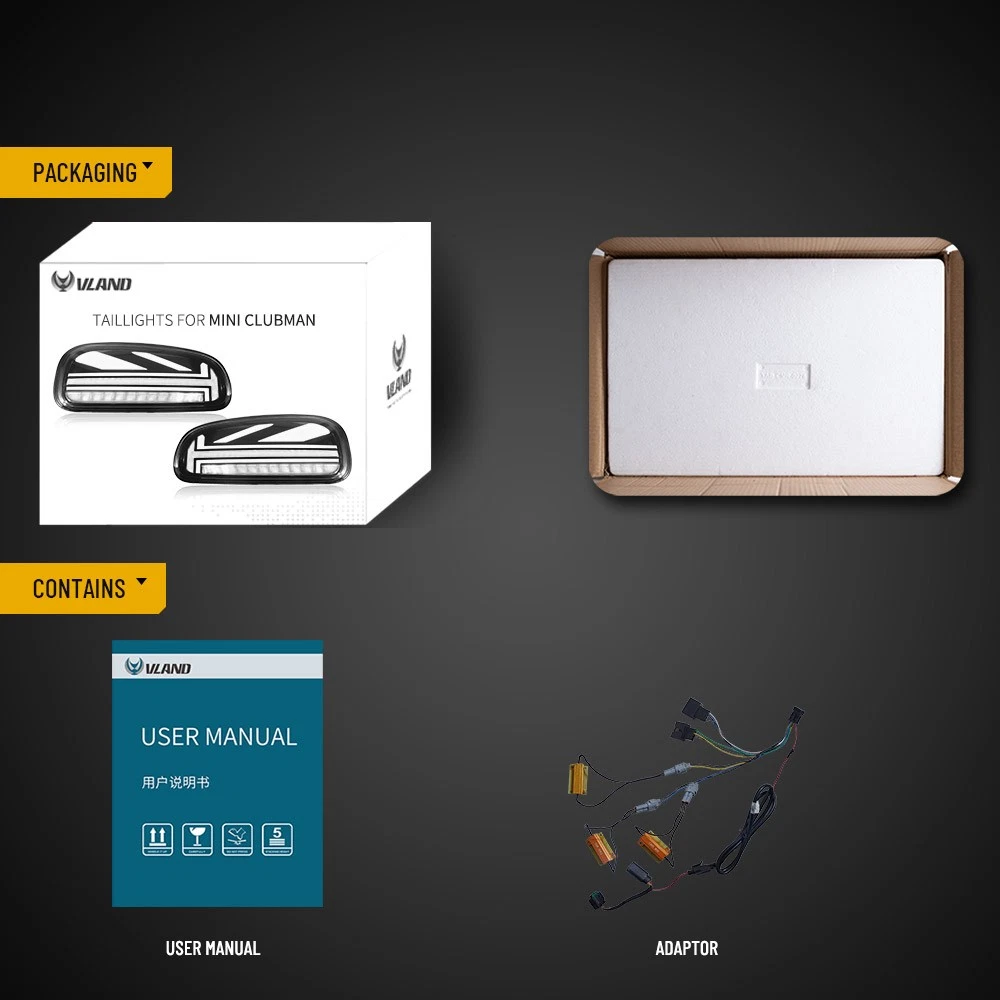 VLAND LED Tail Lights For 2015-2023 Mini Cooper F54 Clubman Rear Lamps Assembly Part #: 63217475585, 63217475587,63217477637,, 63217487795, 63217484099., 63217475586, 63217475588,63217477638,, 63217487796, 63217484100. INCLUDES: (1) Front Taillight Assembly Right Passenger Side (1) Front Taillight Assembly Left Driver Side Fitment: Mini Cooper Clubman F54 LCL F54 F54N 2015-2023 Contact Us SHIPPING & RETURN WARRANTY Contact Us 100% satisfaction goal. If you have had less than 100% positive experience, please contact us, so we can work out a resolution. Your questions will be replied within 24 hours except the weekend and holiday. We will serve for you with all sincerity! SHIPPING & RETURN Shipping Information - Policy The goods will shipped by the eBay address, so please leave the right address on eBay Please, choose some local sellers, If you cannot wait patiently in the shipping time we declared. Once you purchase, please DON’T leave negative or neutral feedback if you haven't received item in 30 days, because we have mentioned the shipping time repeatedly. If you not satisfied with the goods please contact us before leave the feedback, we will try ourbest to satisfy you. Standard Order Processing time: W e'll update you when proceeding with your order from (Monday - Friday). Payment cleared/received on Friday will be shipped on the next business days (Monday or Tuesday). We are not responsible for carrier transit time. This information is provided by the carrier and excludes weekends and holidays. Note that transit times may vary, particularly during peak periods or in climate weather conditions, and that delivery times frames will need to be extended for any processing time frames in excess of 2-3 business days. WARRANTY Standard Replacement Specifically excluded from this warranty are failures caused by misuse, negligence, modification, abuse, improper application, installation or operation, or by unauthorized service or use of unauthorized parts in connection with the product and inadequate maintenance, normal wear and tear or normal consumption of the product. One time replacement Customers are responsible for the return shipping cost on warranty claims. We will refund you the money you paid for the parts less shipping and handling charges Please Note: - We also have more models available, please contact us if you can't find your specific model. - When products are noted in the description as out of stock, these products will then be offered as pre-sale items, normally they will be posted within 20 days from the date of cleared payment. - Item sold in a pair (left and right), bulbs may or may not be provided. On Jan 5, 2026 at 18:31:49 PST, seller added the following information: