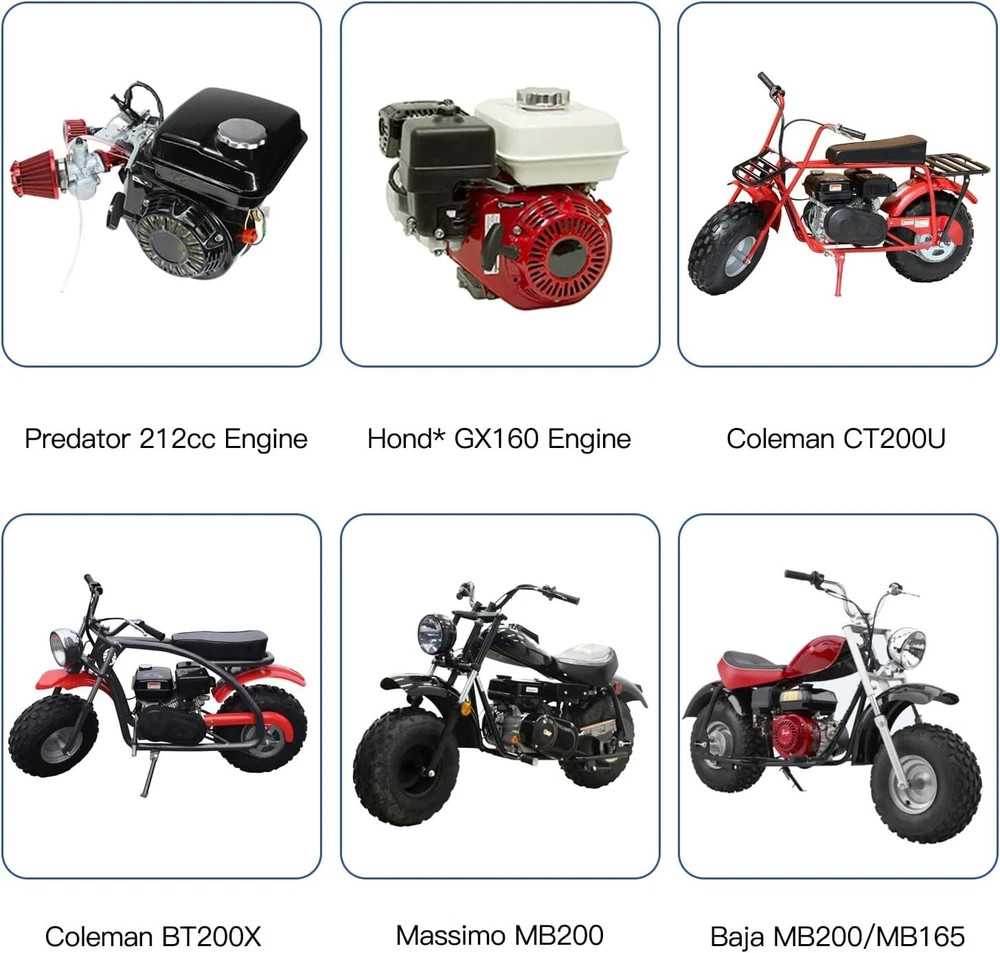 Number in Pack: 1 Material: Aluminum, Chrome Vehicle Service Type: Bike Brand: Unbranded Color: a-red Exterior Finish: Chrome UPC: Does not apply Recommended Uses For Product: Go Kart Compatible With Vehicle Type: Bike gtin13: Does not apply Type: Carburetor Compatible Model: For Predator 212cc, For Coleman CT200U, For Coleman CT200U-EX, For Hond* GX160, For Hond* GX200, For Baja Warrior MB200, For Mega Moto Mega Max, For Baja Trailmaster, For Harbor Freight Predator 68121, For Harbor Freight Predator 69727, For RATO R210-III Compatible Brand: Carburetor Kit for Predator 212cc Engine Power Source: Gas Horsepower: 6.5 HP