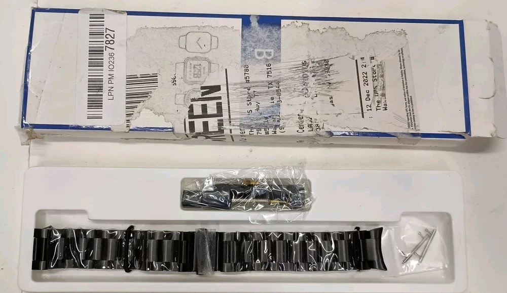 Elevate your Samsung Smart Watch's style with this sleek black metal wristwatch band from V-MORO. Crafted from durable stainless steel, this two-piece strap is compatible with the Fossil brand and has a band width of 46mm. The luxury theme of this band is perfect for any unisex wearer who wants to add a touch of sophistication to their smartwatch. This band is a perfect fit for smartwatches manufactured from 2010 to now and is not personalized or handmade. It is a replacement kit that is easy to install and remove. The V-MORO Samsung Smart Watch 4 Replacement Kit Band Black Metal Classic Band New is a great addition to your watch accessories collection.