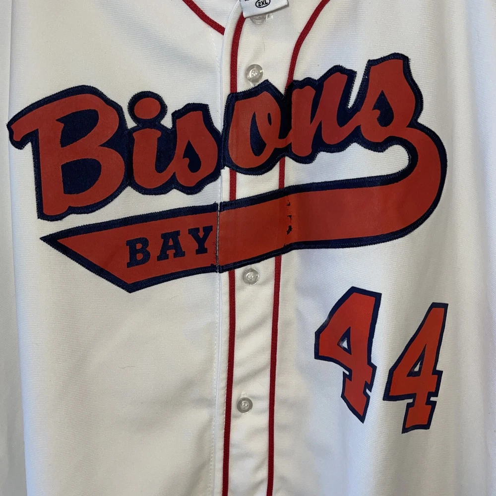 VNTG Alleson Athletic BISON BAY#44 Men's 2XL Sleeveless WHITE Button Jersey