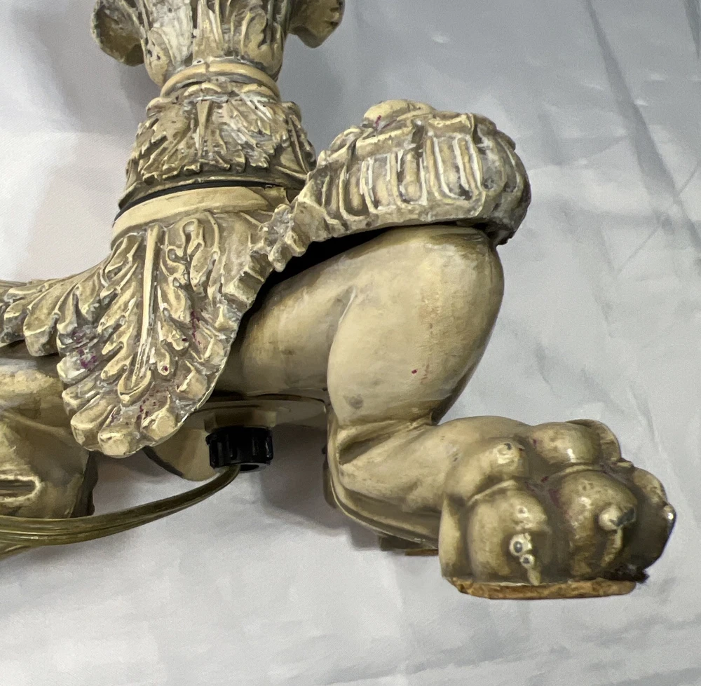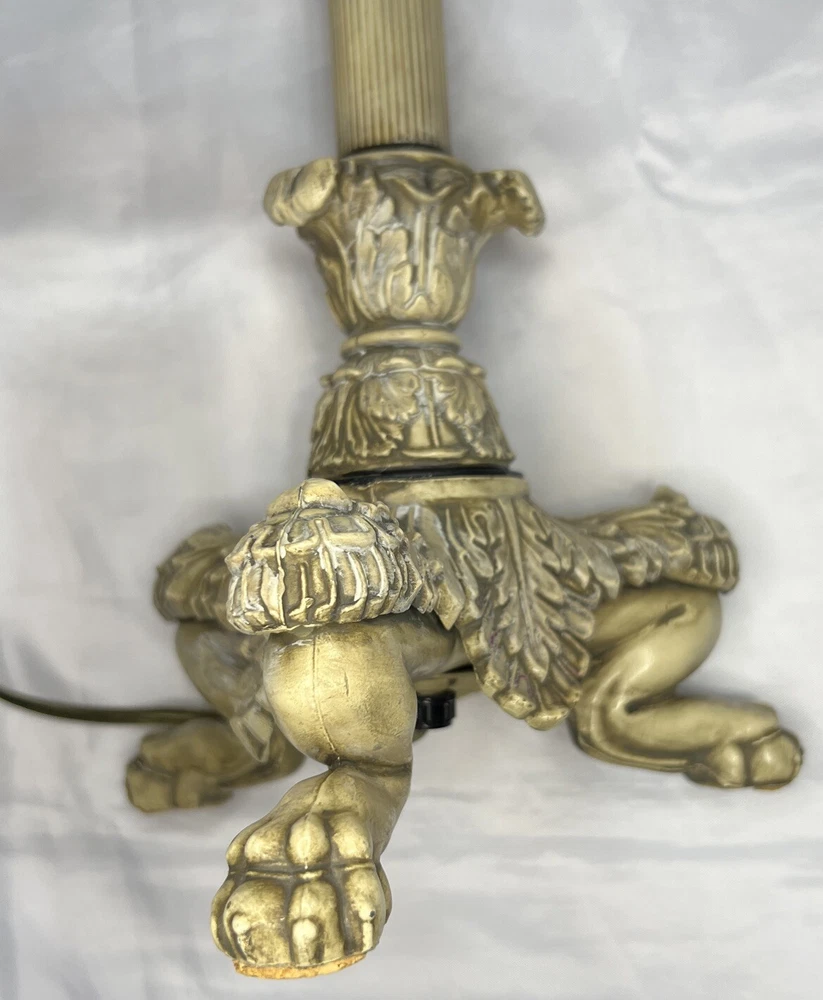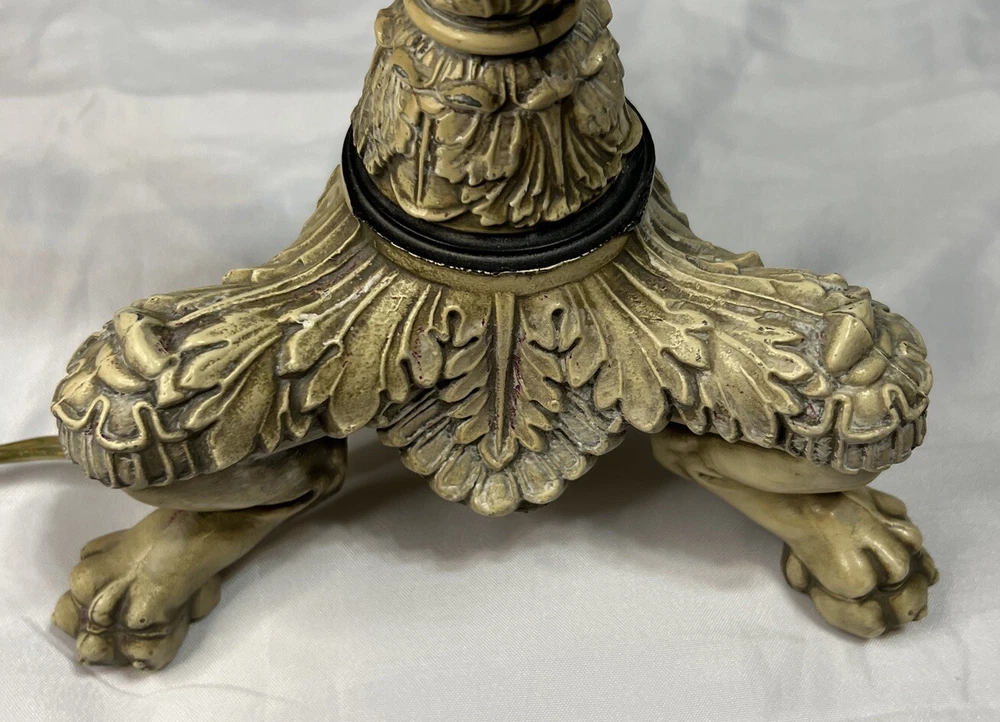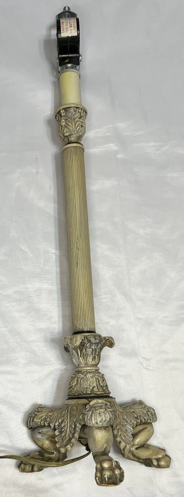 ** BEAUTIFUL VINTAGE CHAPMAN FRENCH EMPIRE ANIMAL CLAW / FILAGREE 23” INCH TABLE LAMP** & WEIGHS JUST OVER 4lbs ** CLAWS MEASURE 7” APART FROM EACH OTHER ** DUEL BULB LIGHTING ** MADE & PAINTED TO LOOK LIKE A COLUMN / OR STATUE ** BASE IS METAL UNKNOWN IF CAST STEEL OR PAINTED BRASS OR BRONZE ** COMES FROM NON SMOKING HOME ** HAD ONE OWNER BEFORE ME ** GREAT PIECE FOR ANY KIND OF ROOM ** SHADE NOT INCLUDED IT IS FOR MODELING LAMP USE FOR MY STORE ONLY .. SORRY ** WILL BE PACKAGED & SHIPPED WITH EXTRA CARE ** SHIPS WITHIN 48 BUSINESS HOURS OF PURCHASE