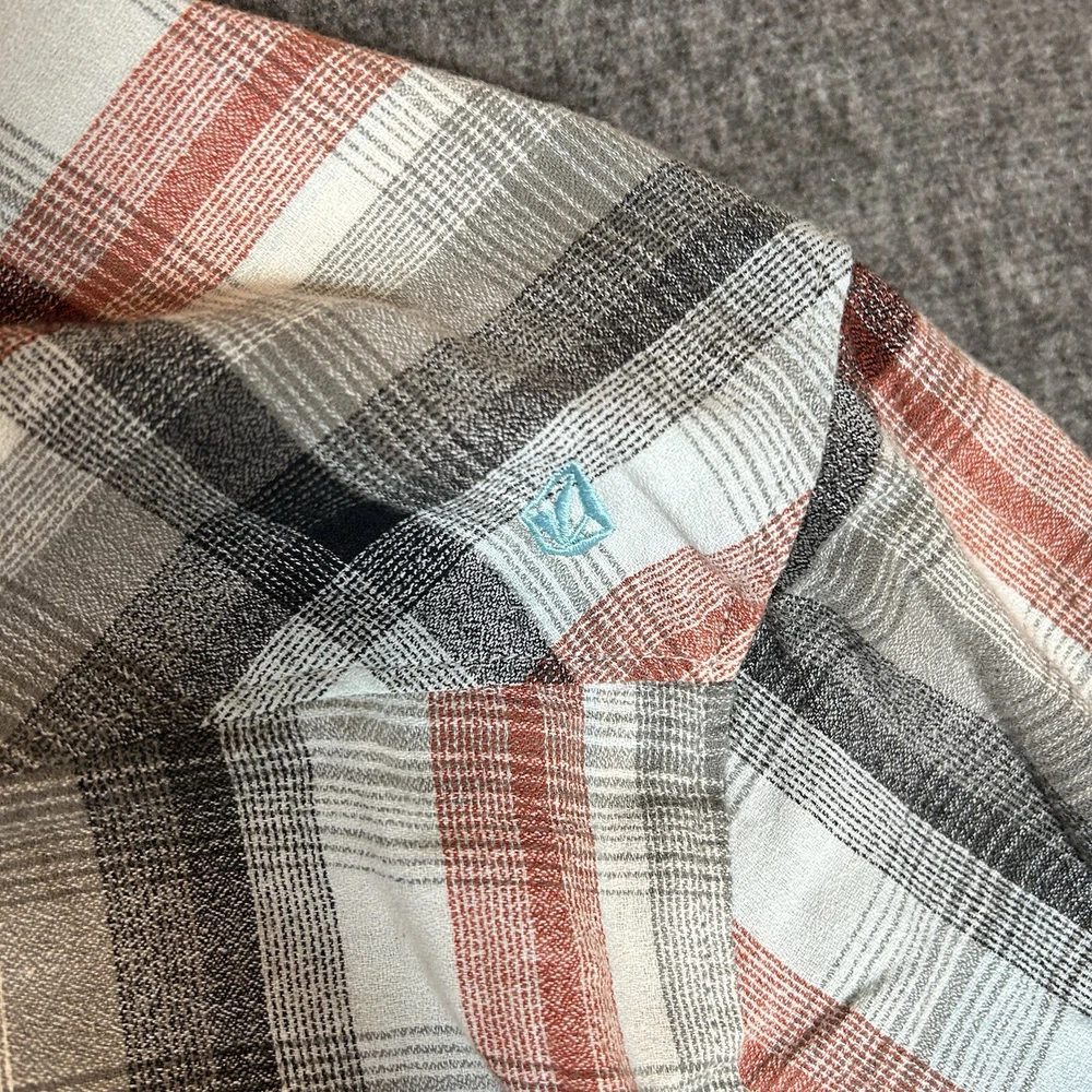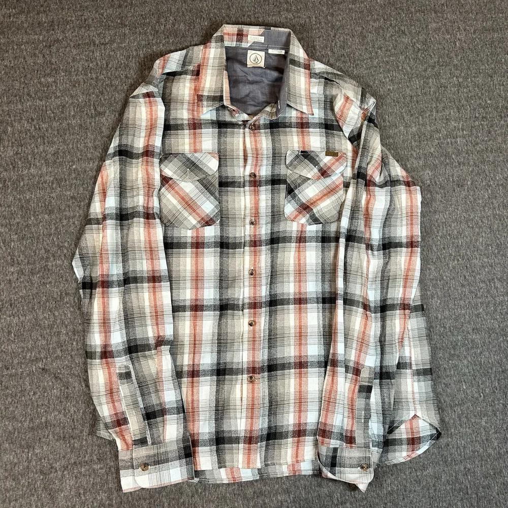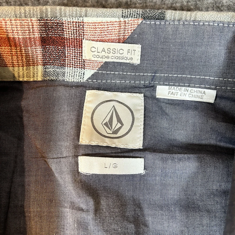 Volcom Button Down Shirt is in very good condition, with minimal wear from age and use. Please see Photos for Condition of Shirt. Elevate your wardrobe with this stylish Volcom button-down shirt, perfect for any occasion from casual wear to workwear. The plaid pattern, collared neckline, and button-down collar style give it a classic look, while the long sleeves and regular fit make it comfortable to wear in any season. The shirt features easy care fabric and pockets for added convenience. It comes in a multicolor design, making it a great addition to your travel or everyday outfits. This shirt is available in size large and is suitable for men.