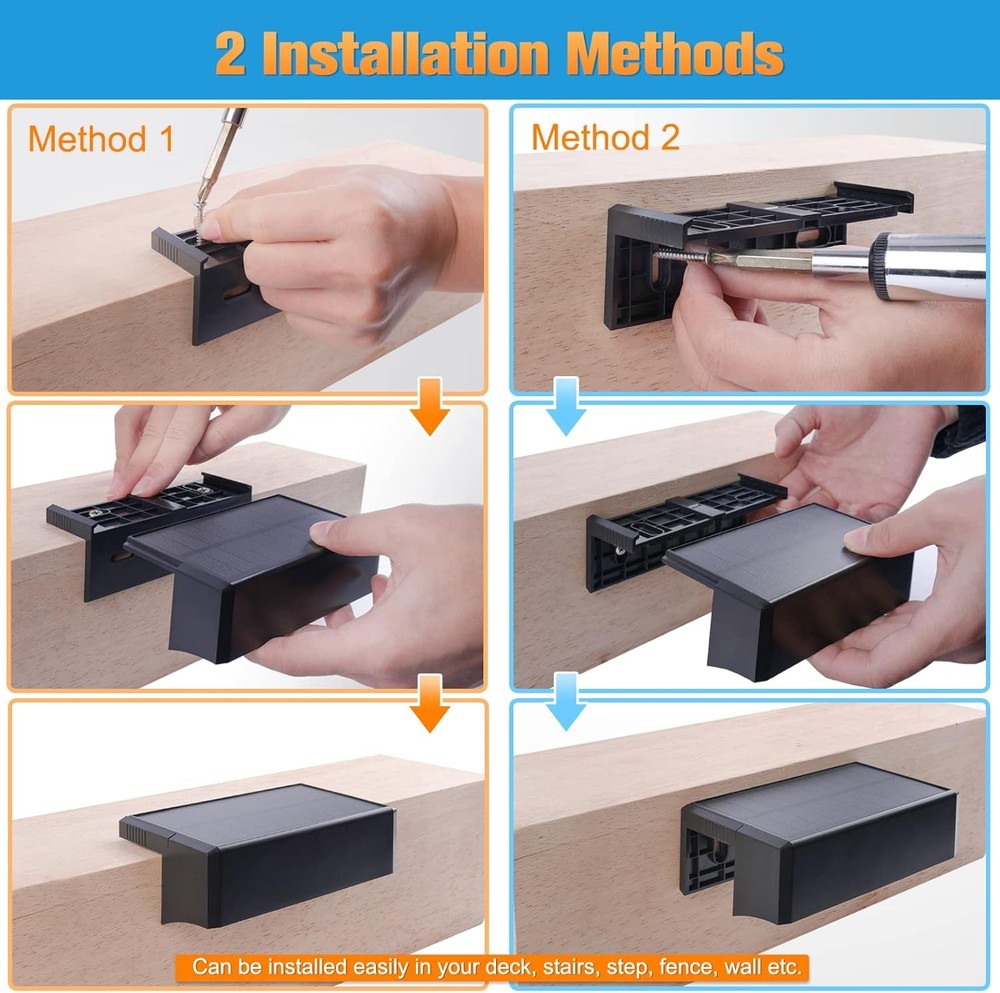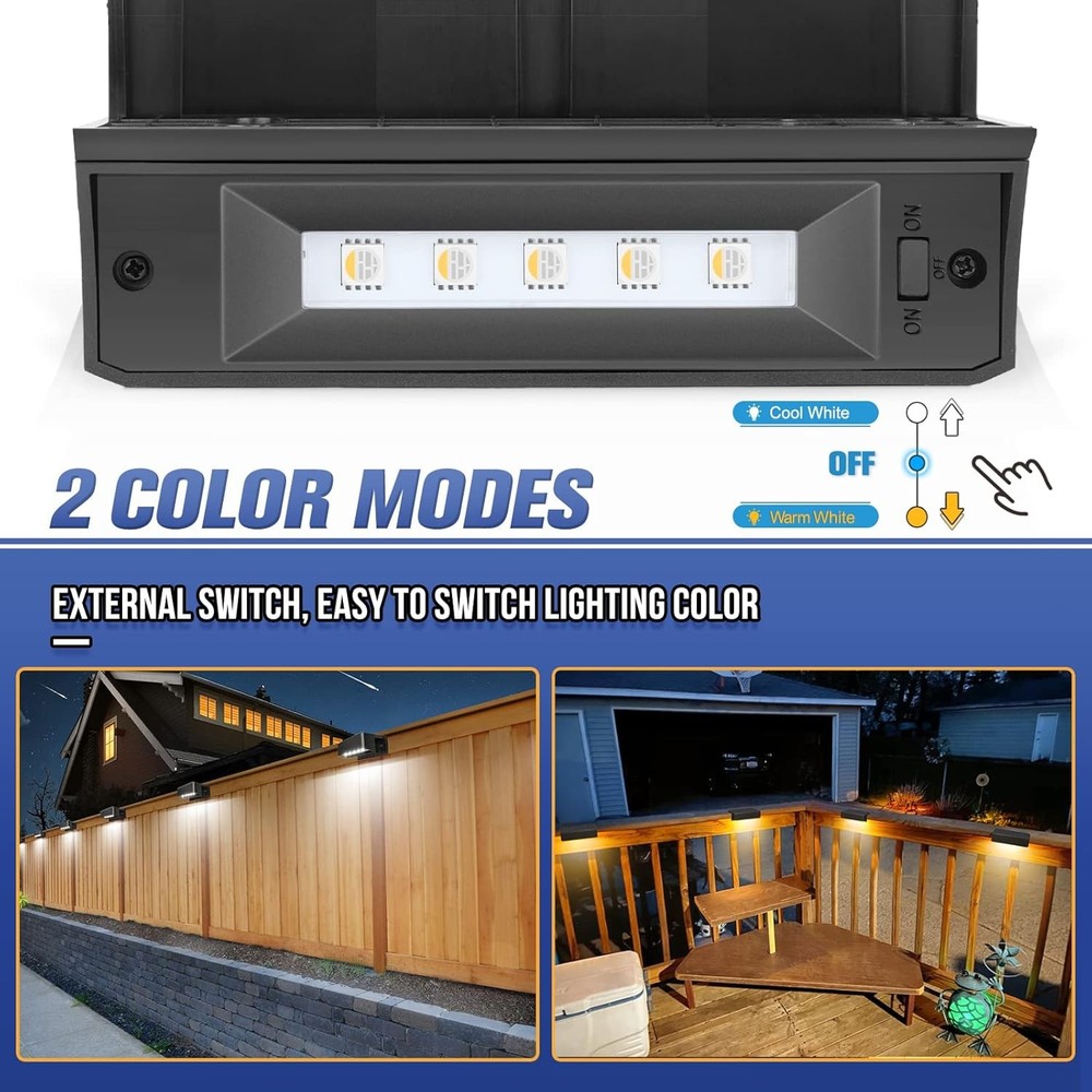 VOLISUN Solar Deck Lights Outdoor Fence 12-Pack, Cool White+Warm White Product Details Brand: VOLISUN Color: Cool White+Warm White Material: Acrylonitrile Butadiene Styrene Style: Modern Light fixture form: Wall Room Type: Outdoor Fence, Deck Railing Product Dimensions: 1"L x 1"W x 1"H Specific Uses For Product: Fence Lighting, Wall Lighting, Deck, Railing Lighting, Step Lighting Indoor/Outdoor Usage: Outdoor Power Source: Solar Powered Installation Type: Wall Mount Special Feature: Adjustable Color Temperature, Waterproof, Color Changing Control Method: Remote Light Source Type: LED Shade Material: Shell Number of Light Sources: 12 Light Color: 3000K Warm White, 5000K Cool White Included Components: 12 pack LED lights, 1*User manual, 24 sets of screws Embellishment: Fence Lighting, Wall Lighting, Deck Lighting, Railing Lighting, Step Lighting Lighting Method: Up/Down Light Item Weight: 1.81 Kilograms Number of Items: 12 Controller Type: Push Button Switch Type: Push Button Unit Count: 12.0 Count Water Resistance Level: Waterproof Mounting Type: Wall Mount Shade Color: White Fixture Type: Non Removable Assembly Required: No Size: 12-Pack Recommended Uses For Product: Outdoor Lighting Model Name: 21135ZM Part Number: 21135ZM Item Weight: 3.98 pounds Country of Origin: USA Item model number: 21135ZM Special Features: Adjustable Color Temperature, Waterproof, Color Changing Plug Format: A- US style Batteries Included?: No Batteries Required?: No Product Dimensions : 1 x 1 x 1 inches; 3.99 Pounds Item model number : 21135ZM Country of Origin : USA Brand: VOLISUN Color: Cool White+Warm White Material: Acrylonitrile Butadiene Styrene Style: Modern Light fixture form: Wall 【Highest Industry Standards】Aiming at the problems of solar steps light on the market,we have upgraded the size of the solar panel, the battery capacity and the waterproof level,which means that the lighting time and service life of the solar deck lights will be greatly improved. What's more, we provide lifetime item Technical Support and do our best to minimize your losses. 【2 Colors Available】3000K Warm White and 5000K Cool White, meet your daily lighting. The color adjustment button is external, you can easily adjust your fence light at any time, very suitable for your deck, fence, Railing and Stairs. 【Waterproof & Long Lighting time 】With hard ABS shell, the solar deck light is designed to withstand rain, wind, or small snowy days . 4-6 hours solar charging time, solar deck lights enough to supply the leds up to 12 hours, maybe they're still there when you wake up the next morning. 【2 installation methods】The exclusive product design creates more installation possibilities for solar deck lights, no need to worry about whether the size of the solar step lights matches your stairs perfectly, or whether it can win your fence lighting, they are definitely the best choice for outdoor lighting. 【Installs in Minutes】Out-of-the-box, No wiring, this solar deck lights can be installed in anywhere the sunshine with screws. VOLISUN deck lights set contains screws which can be easily solved even by the elderly, and it’s safer for the whole family to go downstairs at night. The set includes screw fittings,out of the box.