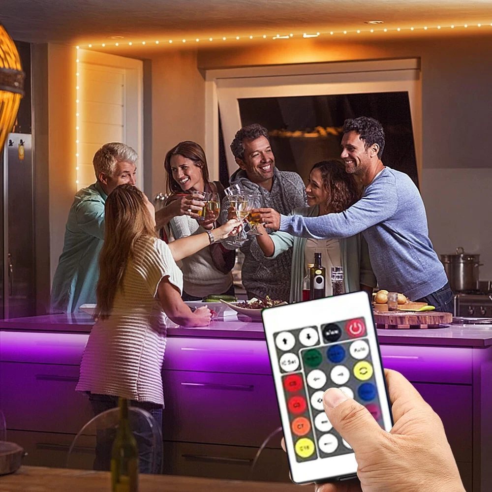 VOLIVO 100ft RGB Led Strip Lights, Color Changing 100 ft, Multicolor Product Details Color: Multicolor Brand: VOLIVO Indoor/Outdoor Usage: Indoor Special Feature: Color Changing Light Source Type: LED Power Source: Corded Electric Light Color: Multicolor Theme: Music Occasion: Wedding Style: Modern Material: Metal, Copper Controller Type: app,bluetooth Connectivity Protocol: Bluetooth Connectivity Technology: Bluetooth Number of Light Sources: 150 Voltage: 24 Volts Wattage: 36 watts Included Components: '44 keys remote' Item Weight: 0.57 Pounds Number of Items: 2 Control Method: App Wireless Communication Technology: Bluetooth Manufacturer: VOLIVO Part Number: V-B3515NWF-02 Item Weight: 9.1 ounces Package Dimensions: 9.92 x 8.74 x 0.75 inches Item model number: V-B3515NWF-02 Size: 100 ft Special Features: Color Changing Batteries Included?: No Batteries Required?: No Color: Multicolor Brand: VOLIVO Indoor/Outdoor Usage: Indoor Special Feature: Color Changing Light Source Type: LED Power Source: Corded Electric Light Color: Multicolor Theme: Music Occasion: Wedding Style: Modern Ultra Long LED Strip Lights: The led light strip comes with 2 rolls of 50 feet ; It’s Long enough to decorate the entire room; Led lights for room decor is suitable for bedrooms, kitchens, stairs, dining rooms, ceilings, and large party areas. 2 Ways Control Design: The bluetooth led lights could be controlled via App and remote; You can download the app to control the led strip lights for bedroomor controlling with 44 keys remote; With the app, you can choose different kinds of led light strips mode, switch millions colors and adjust brightness Music and Mic Function: Sync the smart bluetooth led lights for bedroom 100 ft bluetooth to your favorite music in the party; The led light strips is sync with the music or built in microphone, led room lights colors and speed automatically adjusting base on the rhythm Multiple Scenes Available: take your home ambience to the next level; 16 millions color options rgb led strip lights create a colorful atmosphere and affect the entire mood of the space you are in; The smart led strip lights also has color memory and setting the time function Cuttable and Connectable: You can customize the length of bluetooth lights by cutting every 3 LEDs along the cutting mark; You can also use a specific connector to connect the bluetooth to other places