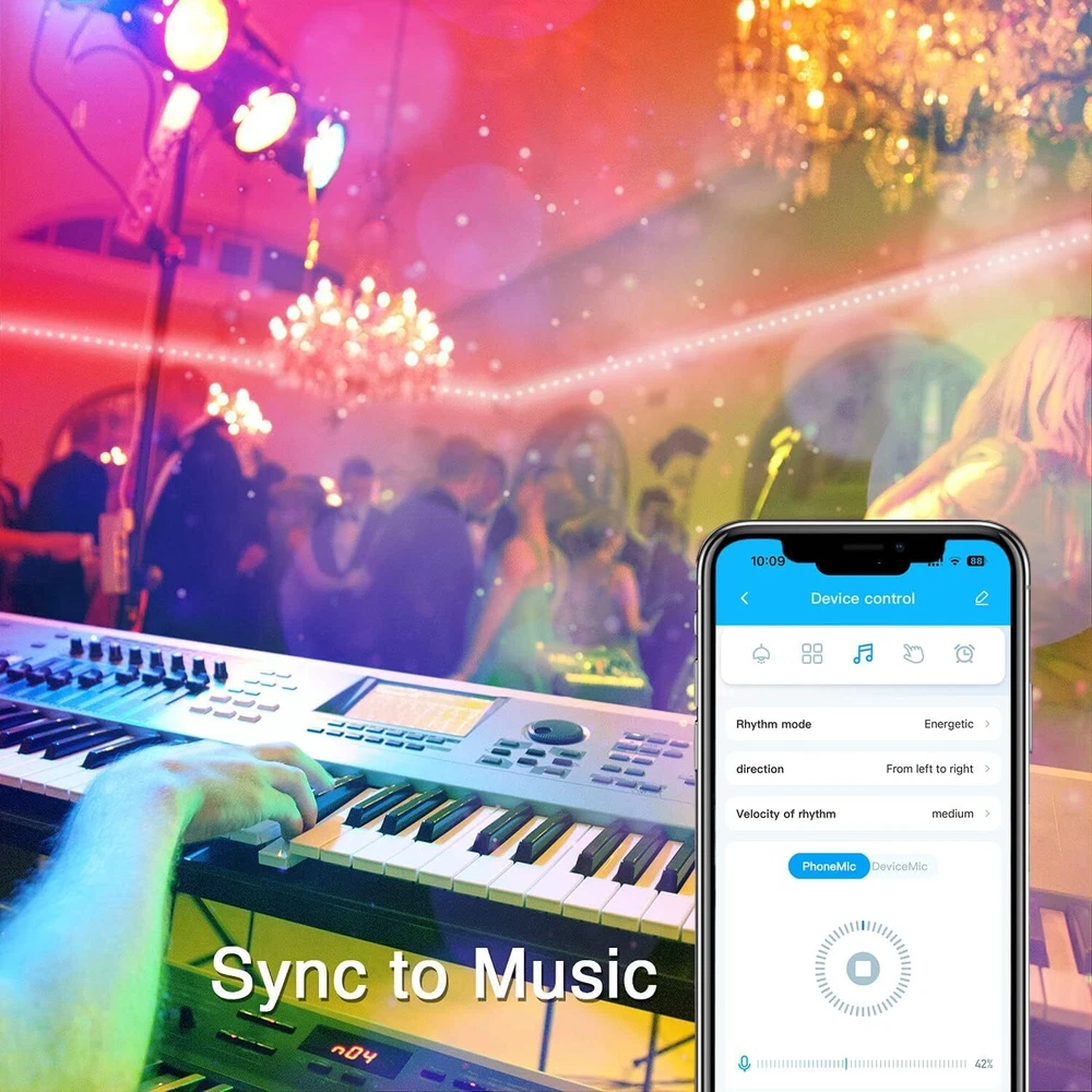 Energy Star: Does not apply Power Source: Corded Electric EC Range: Does not apply Lighting Technology: Does not apply Sensor Type: Does not apply Type: Does not apply MPN: Does not apply Light Color: Multicolor gtin13: 649754470068 Room: Does not apply LED String/Strip Type: Does not apply Features: Does not apply UPC: 649754470068 Voltage: 24 Volts Installation Area: Does not apply Brand: VOLIVO Color: Multicolor Number of Settings: Does not apply Department: Does not apply Light Shape: Does not apply Theme: Music LED Chip Code: Does not apply Occasion: Wedding Cord Color: Does not apply Control Style: Does not apply Output Voltage: Does not apply