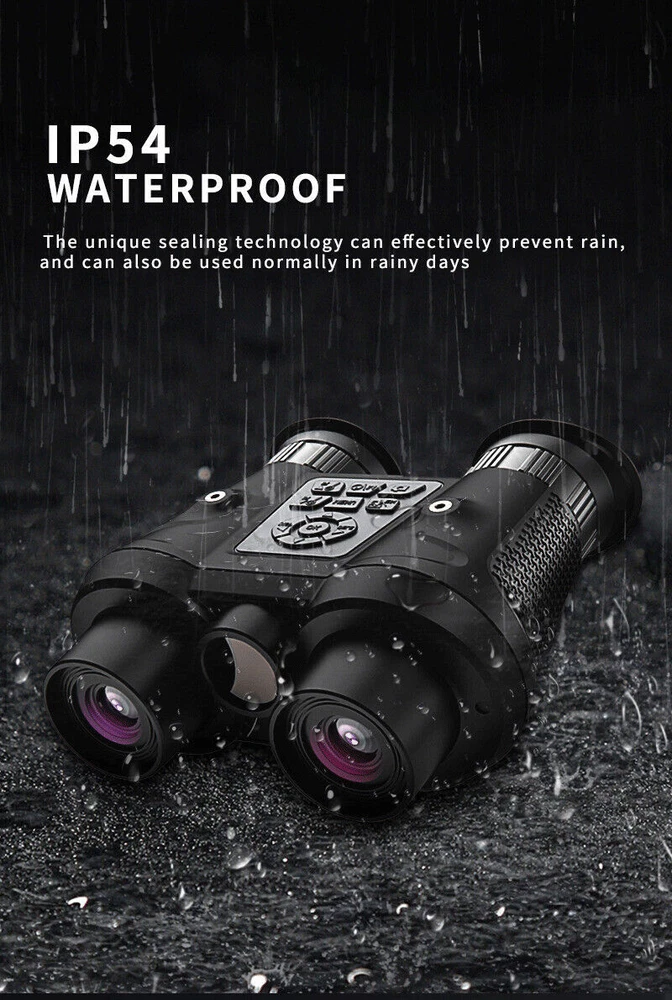 Specifications: 3D image resolution :8064x3024, 7840x2940, 6528x2448, 5184x1944, 4096x1536, 3200x1200, 2560x960, 1280x360 night vision enhancement 3D video resolution :3840x1080, 2880x1080, 2560x720, 1280x360 night vision enhancement Video frame rate: automatic / 5 FPS / 10 FPS / 15 FPS / 20 FPS / 25 FPS / 30 FPS, can choose according to different scenarios set up different frame rate (the lower frame rate, the higher the night vision brightness) Lens: Dual lens, F1.2 wide aperture, f=25mm, FOV 32 degrees, automatic infrared filter Display: Built-in giant screen, equivalent to 2.5 meters to watch 100 inches of large screen, 7 brightness adjustment Memory card: Dual TF card, up to 32GB USB port :TYPE-C Automatic shutdown: Off /1 minute / 3 minutes / 5 minutes / 10 minutes Infrared light :3W, 850nm strong infrared spotlight, 7 levels of infrared adjustment Distance screen saver: The screen is turned on when viewing near the eyepiece, and the screen is turned off when leaving the eyepiece to save power Visual range in total darkness: about 100-150 meters Low light visual distance :1.5 m ~ infinity Digital zoom: 6x digital zoom Color effects: color, black and white, luminous green, infrared light Power supply :3000mAh polymer lithium battery Language: Multiple languages are available Date stamp: Supports setting date and time. Date and time stamps on photo and video files Operating buttons :11 buttons Operating temperature :-20℃ to +50℃ Storage temperature :-30℃ to +60℃ Size and weight: Approx. 126*125*58mm/TDB g Features: ♦ Binocular binocular naked eye 3DVR technology, restore the real stereoscopic scene seen by the human eye (naked eye 3DVR camera patent has been authorized in various countries) ♦ 3DVR effect can be viewed, and 3D photos and video files can be shot ♦ Built-in giant screen, equivalent to 2.5 meters to watch 100 inches of large screen, 7 brightness adjustment ♦ Fully independent binocular technology can independently adjust the vision compensation of the left and right eyes (refractive adjustment range +/-4, suitable for vision compensation adjustment of 400 degrees of nearsightedness/farsightedness) ♦ With distance sense screen saver function, the display opens when watching near the eyepiece, and the display switches off when leaving ♦ Small size, light weight, a variety of portable use, strap on the neck, strap portable head wear, tactical helmet head wear ♦100 m ~150 m full black observation distance, 1.5 m ~ infinite weak light observation shooting distance ♦ Built-in 3000mAh lithium battery, rechargeable ♦ High-power infrared light, 7 brightness adjustment ♦4 color effects: color, black and white, moonlight green, infrared light ♦IP54 waterproof rating Main application scenarios: sports events, large-scale concerts, 3D film shooting, tactics, reconnaissance, hunting, security and surveillance, camping fun, wildlife observation, etc. The package includes: Binoculars *1 USB cable *1 Portable headband holder *1 Instructions *1 About Us Payment and Shipping: 1. we only accept PayPal payment. 2. We will ship your order within 5 days. Please make sure your shipping address and phone number are correct. Returns 1. If the item arrives with defects or errors, before you start the return process, please contact us via ebay message and we will provide you with a satisfactory solution. Communication is always the best way to solve problems. 2. If you do not receive your item on time, please contact us for further assistance. Feedback and Contact Us 1. we always try to provide every customer with the best service and the best quality products, but sometimes there may be accidents, if you are not satisfied with our goods or services, please feel free to leave a message to contact us, we believe we can solve all the problems for you. Please do not feel free to leave negative feedback. 2.If you are satisfied with our products, we also hope you can give us a five-star positive feedback. We will be grateful for that. About tariffs 1. Import duties, taxes and charges are not included in the item price or shipping cost, these charges are collected by the customs of your country. Buyers are responsible for paying import duties and taxes themselves, as stipulated by eBay. 2. Please check with your country's customs office before purchasing to determine these additional customs fees.